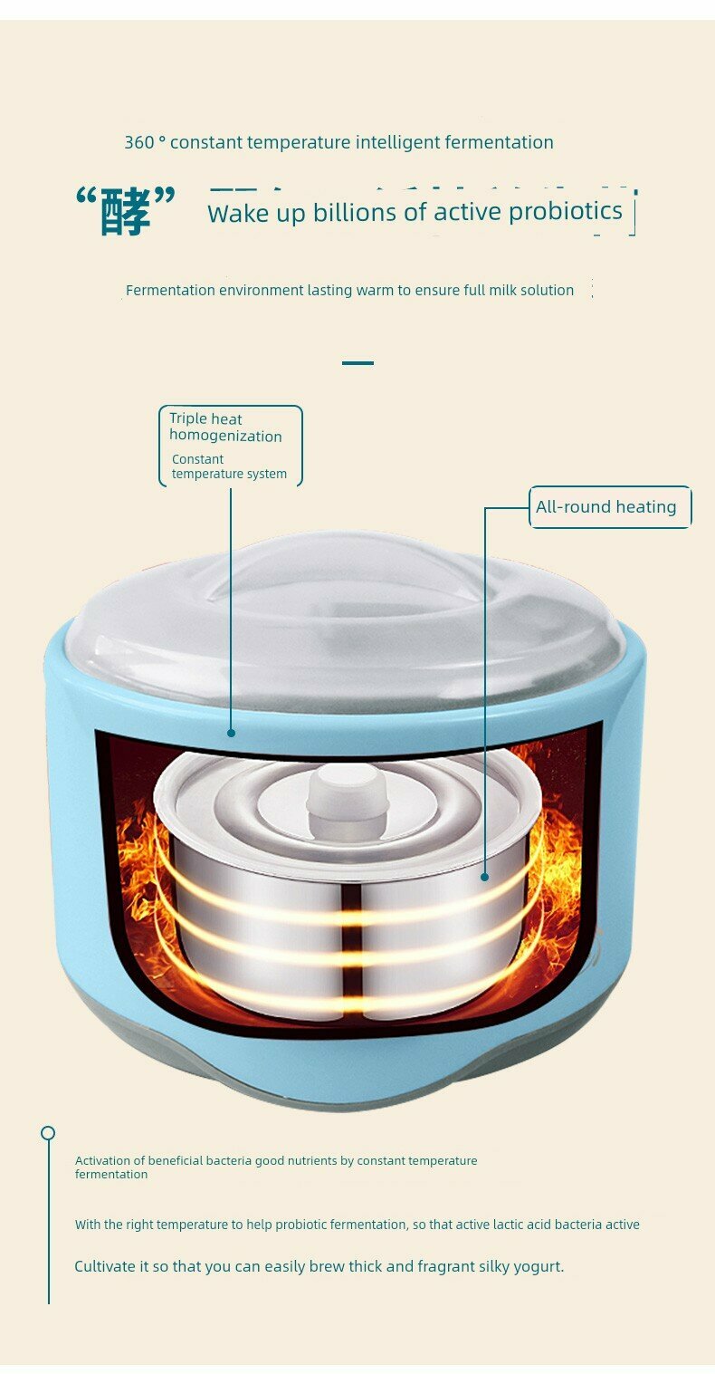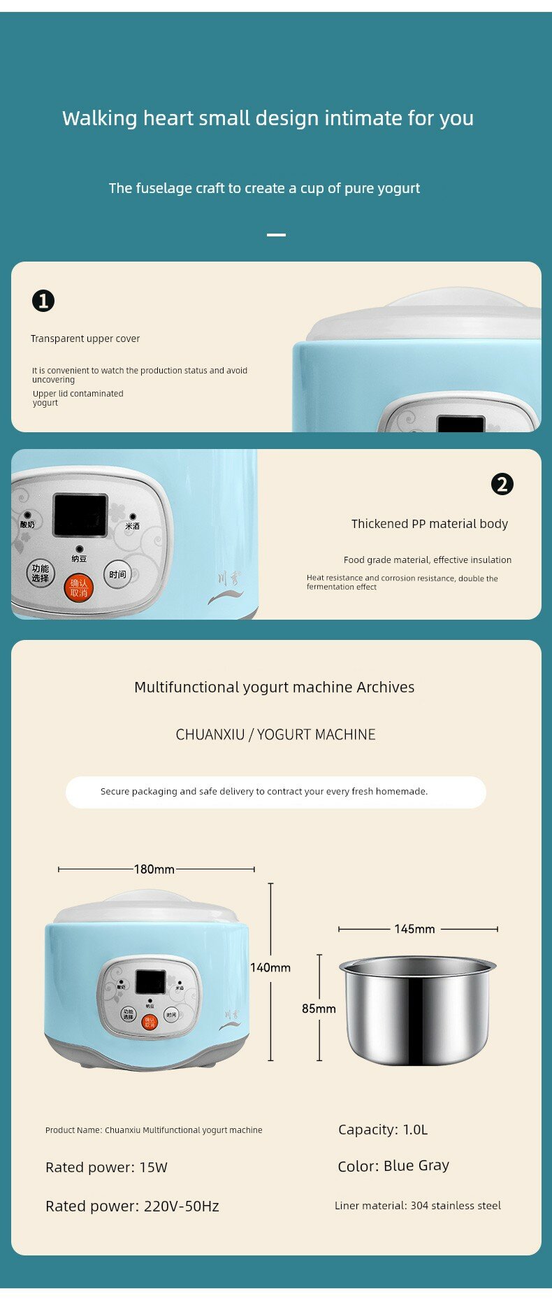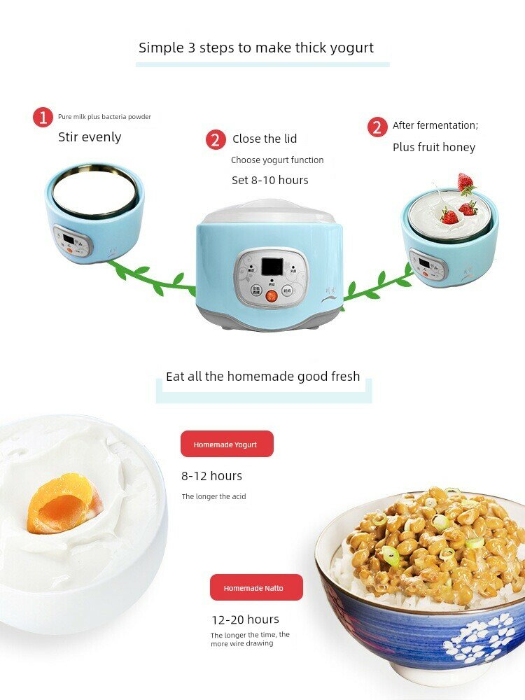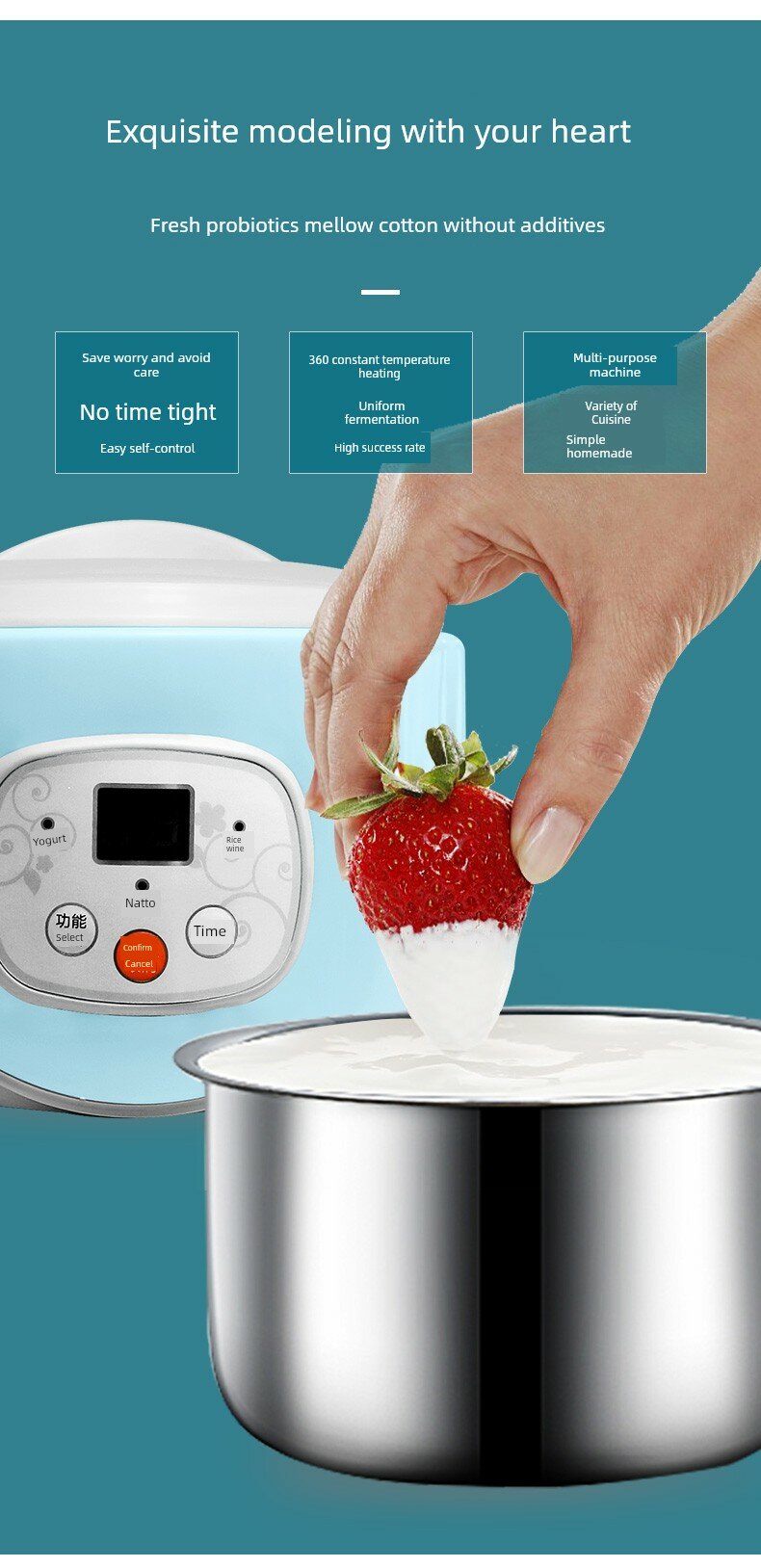 Мультиварка-йогуртница с таймером, сталью 304 и 3 заквасками для старого йогурта (3 x 30 бактерий)
