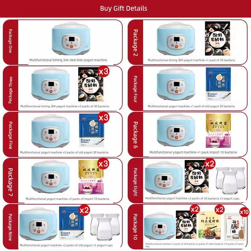 Купить Мультиварка-йогуртница с таймером, сталью 304 и закваской для старого йогурта (30 бактерий)