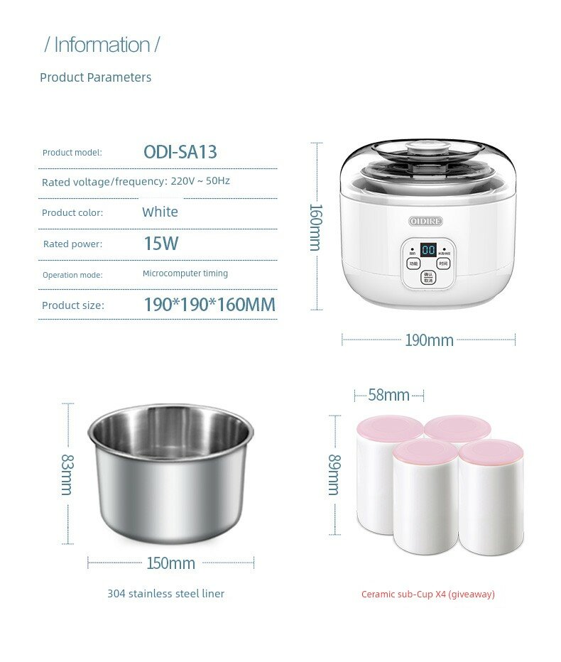 Автоматическая йогуртница с керамическими стаканами, белая интересное: