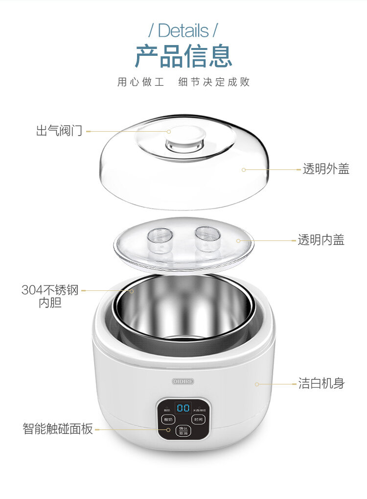 Автоматическая йогуртница с корпусом из нержавеющей стали, белая интересное: