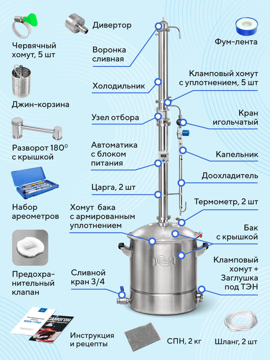 Самогонный аппарат Wein 7 37л колонного типа 2 дюйма / Дистиллятор Вейн 7 интересное: