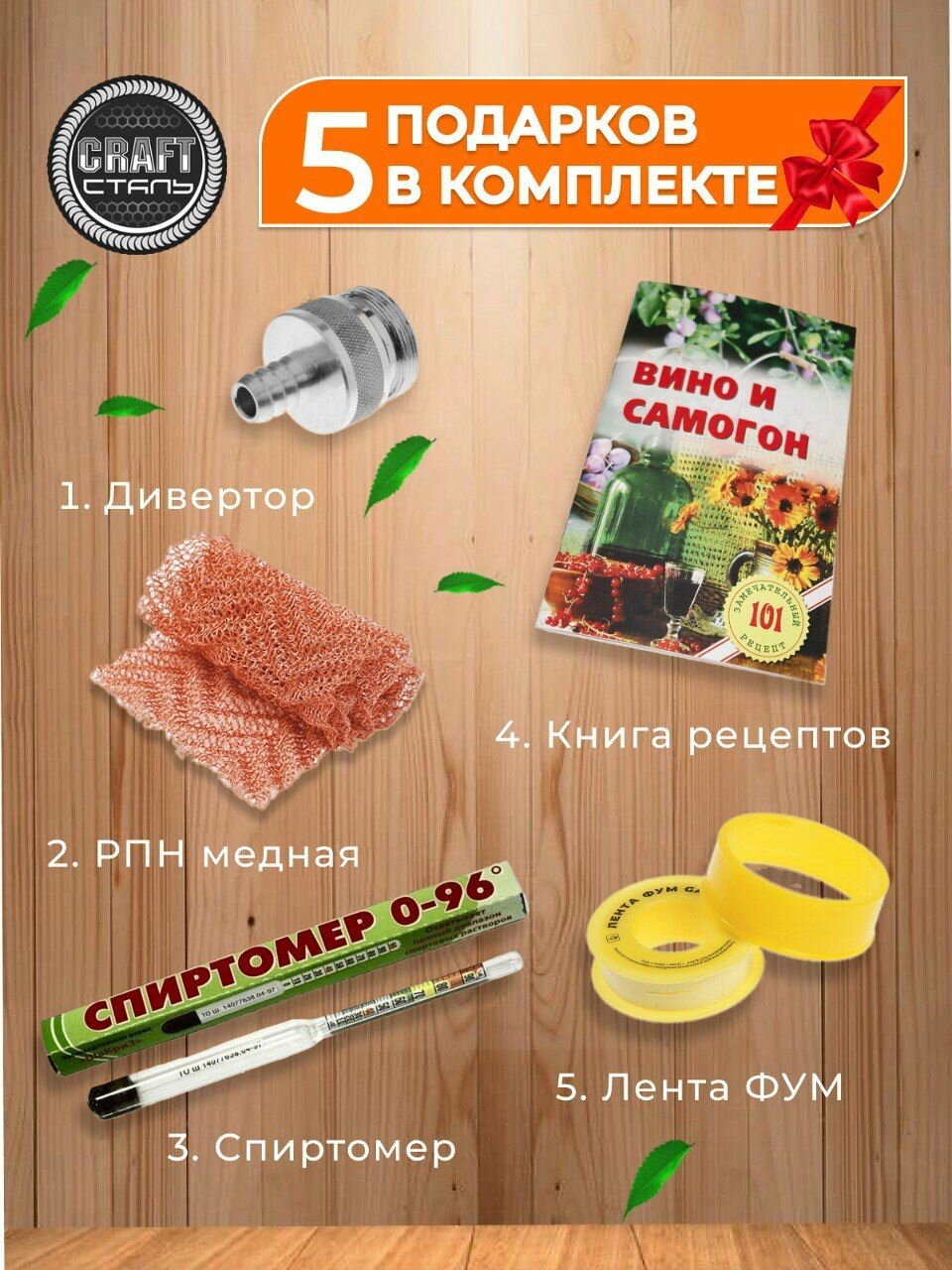 Самогонный аппарат CRAFT Сталь гранат (Домашний дистиллятор) 20 литров из пищевой 304 стали интересное: