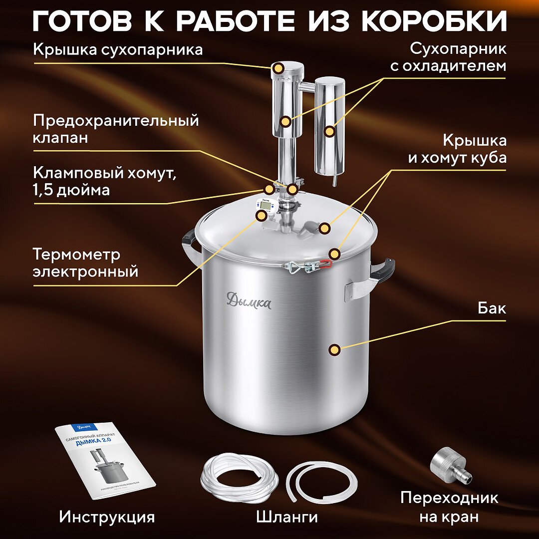 Самогонный аппарат Дымка 2.0 37 литров с сухопарником интересное: