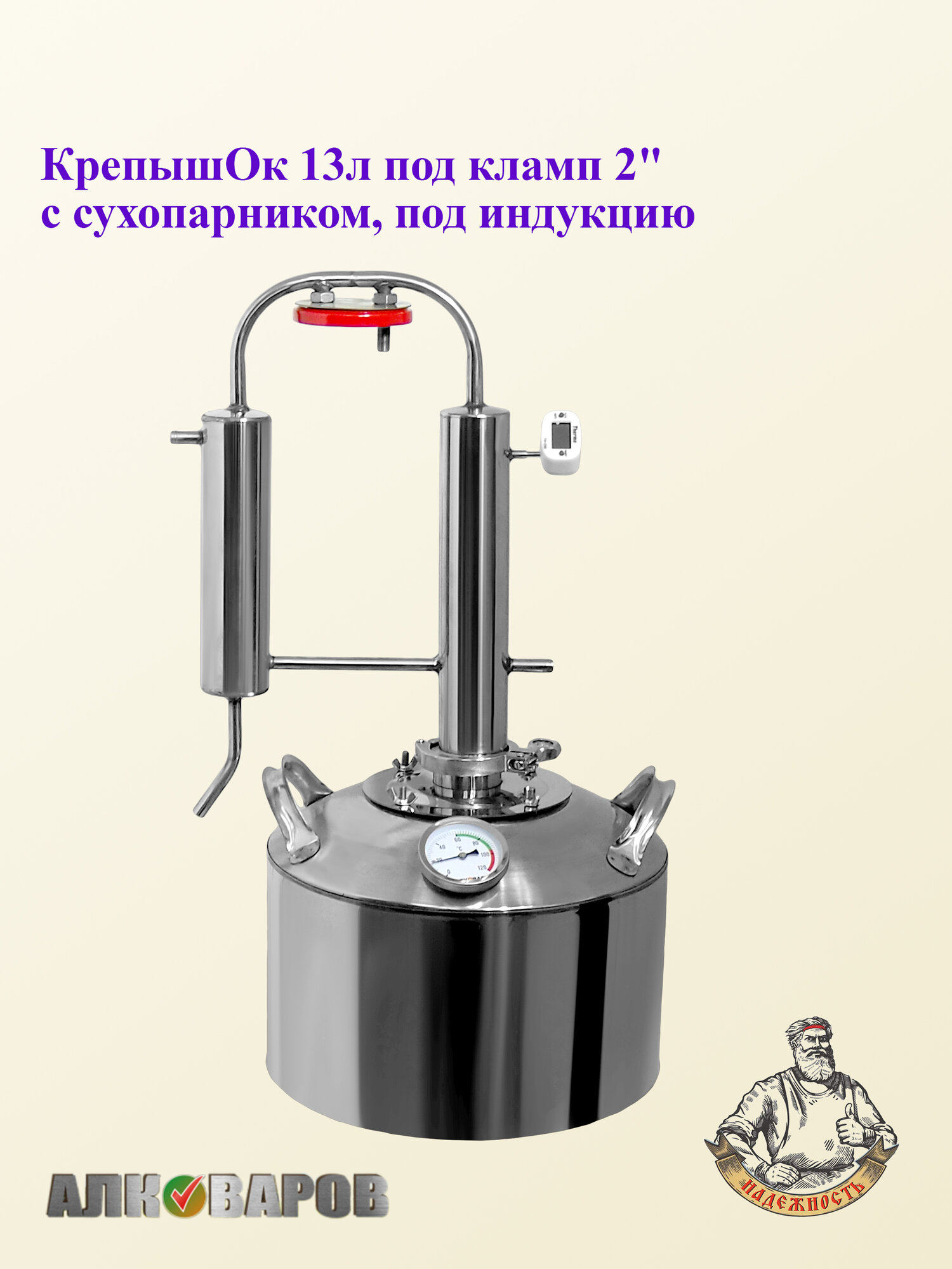 Самогонный аппарат Алковар КрепышОк, куб 13л под кламп 2" с термометром модель 25г интересное: