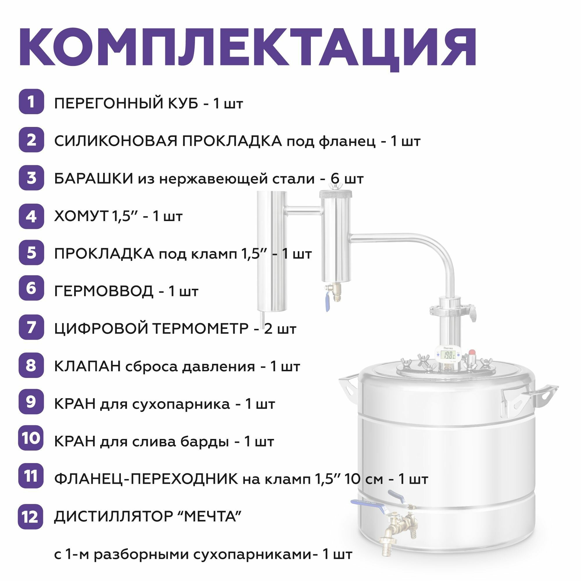 Самогонный аппарат с сухопарником Мечта New, 12 литров, дистиллятор для самогоноварения