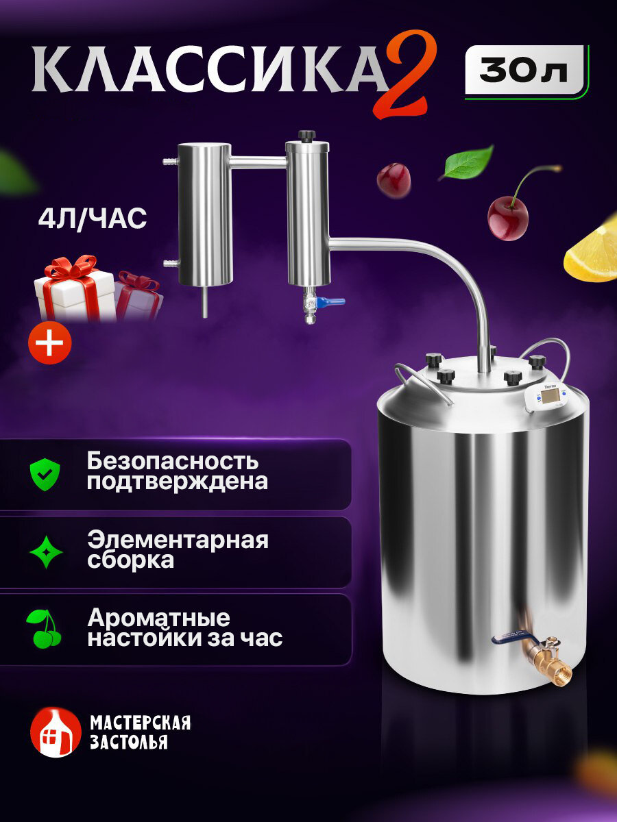 Самогонный аппарат КЛАССИКА-2 2024, 30л, Мастерская застолья интересное:
