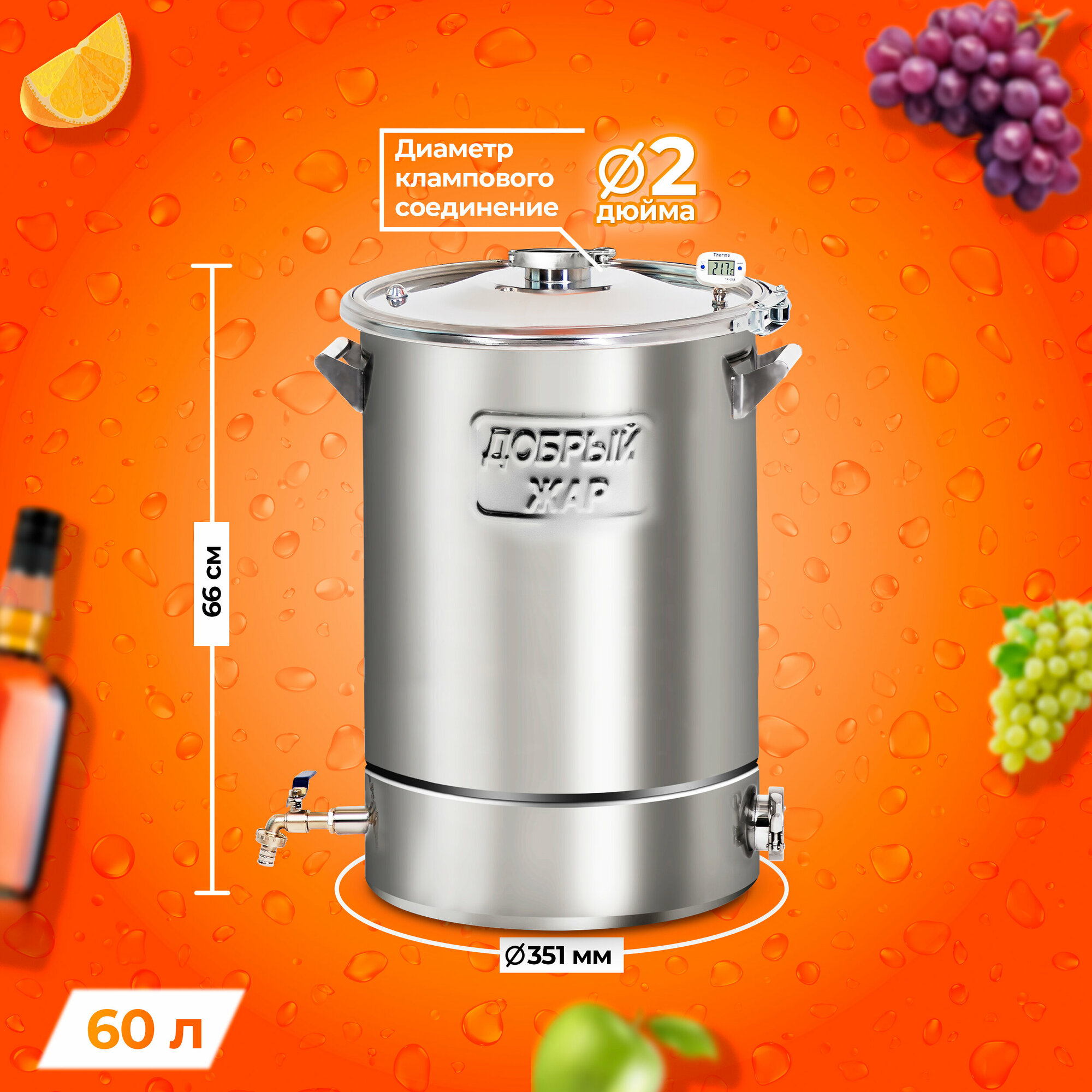 Ниже Вы можете прочитать отзывы на Перегонный куб "Добрый жар" 60 литров с выходом под ТЭН, крышка с клампом на 2 дюйма, ознакомится с подробными характеристиками, посмотреть интересные обзоры и фотографии на Перегонный куб "Добрый жар" 60 литров с выходом под ТЭН, крышка с клампом на 2 дюйма.