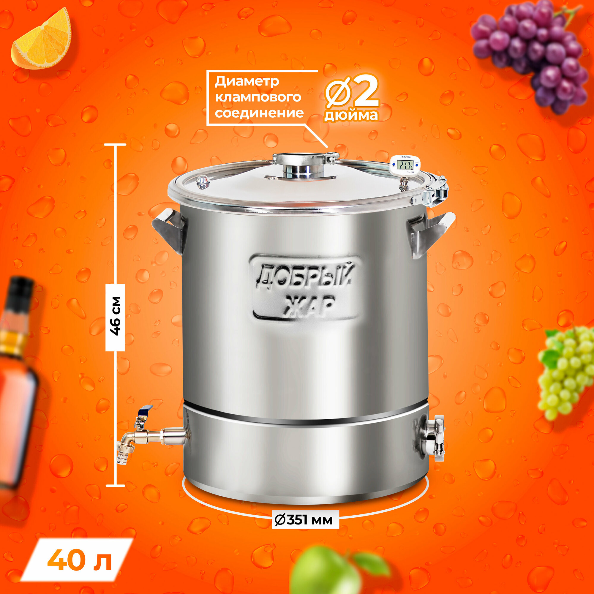 Купить Перегонный куб "Добрый жар" 40 литров с выходом под ТЭН, крышка с клампом на 2 дюйма