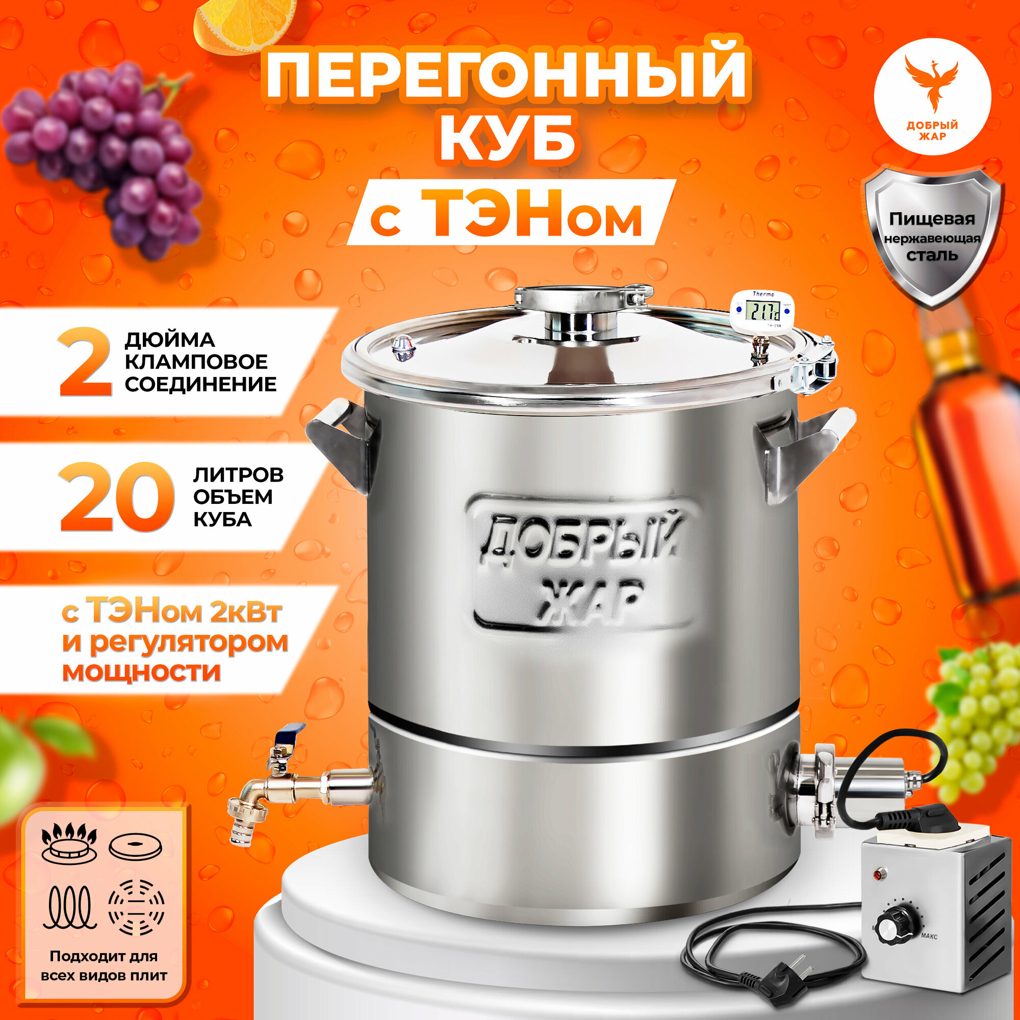 СохранитьПерегонный куб "Добрый жар" 20 литров с ТЭН, крышка с клампом на 2 дюйма интересное: