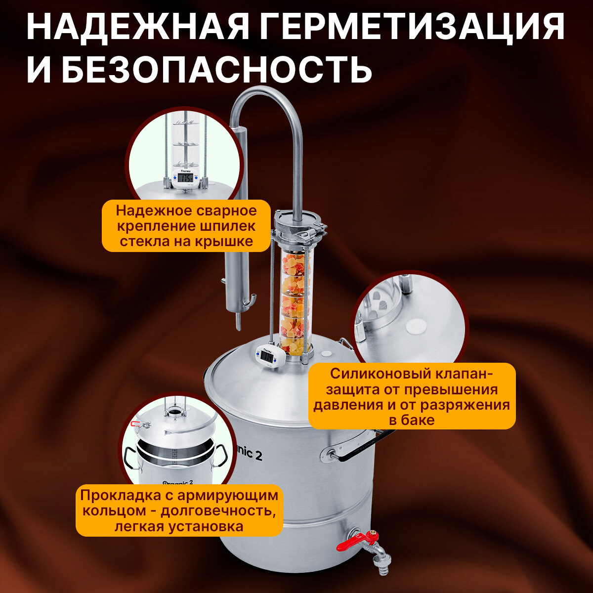 Самогонный аппарат Органик 2024 с увеличителем бака на 25 л колонного типа, дистиллятор со стеклянной царгой