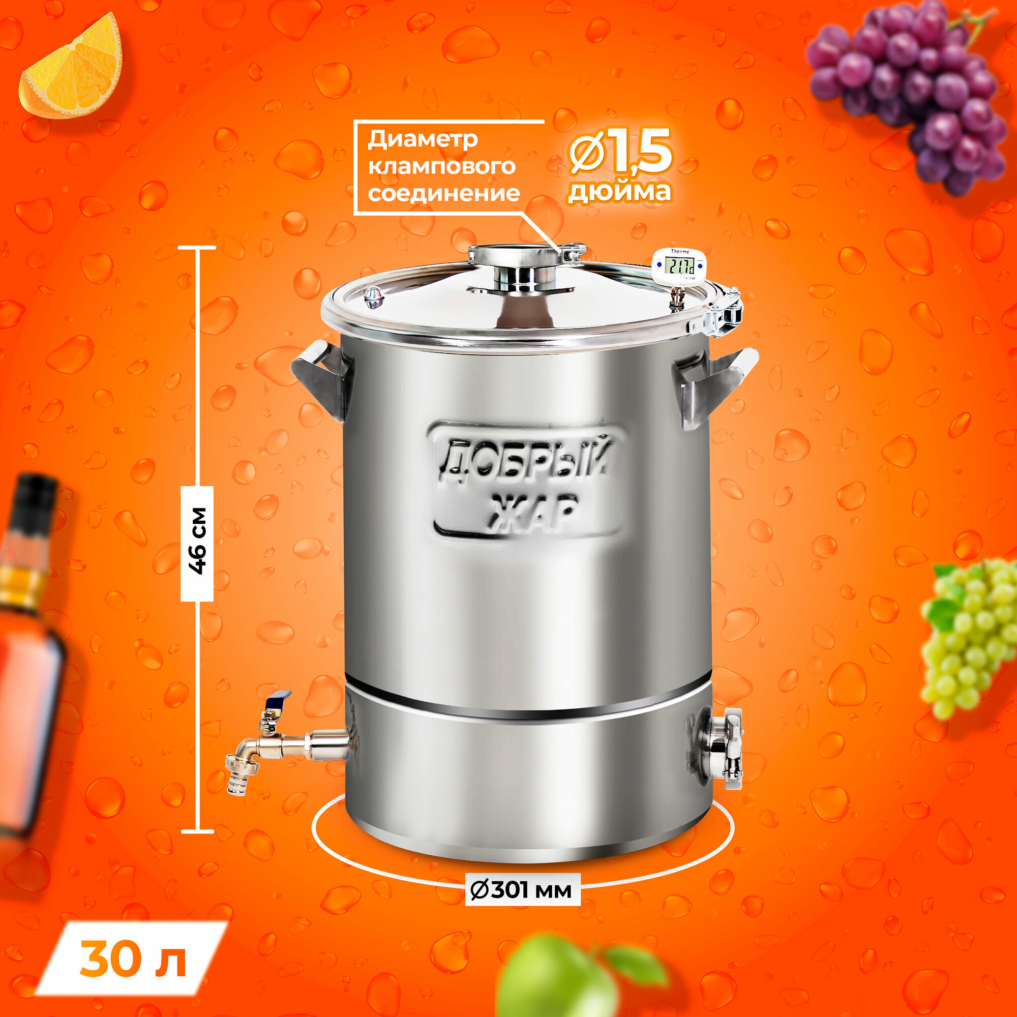 Купить Перегонный куб "Добрый Жар" 30 литров с ТЭН, крышка с клампом на 1,5 дюйма