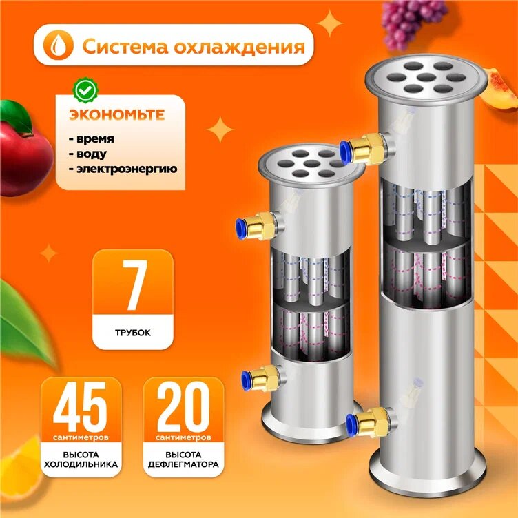 Самогонный аппарат колонного типа Абсолют, 30 литров (с ТЭН), бражная колонна 2 дюйма (7 трубок) интересное: