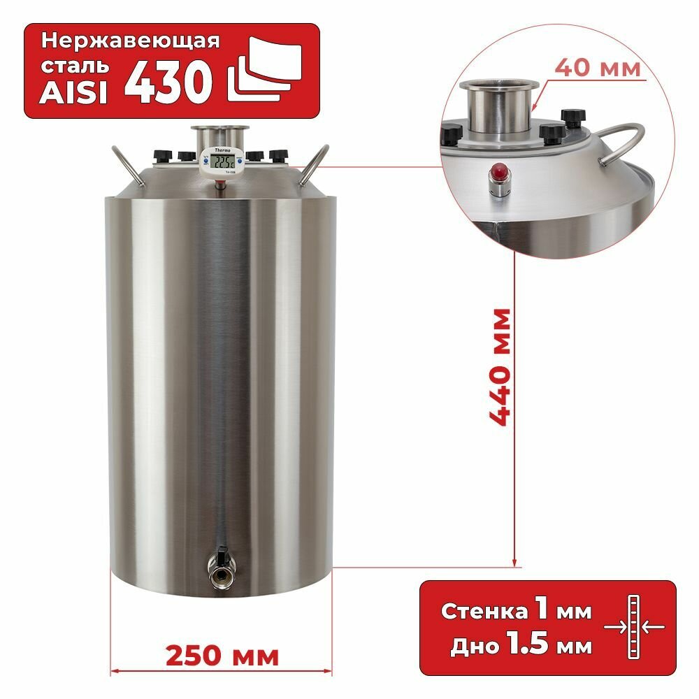 Перегонный куб со сливным краном 20 л с фланцем 2 дюйма Практик Про интересное: