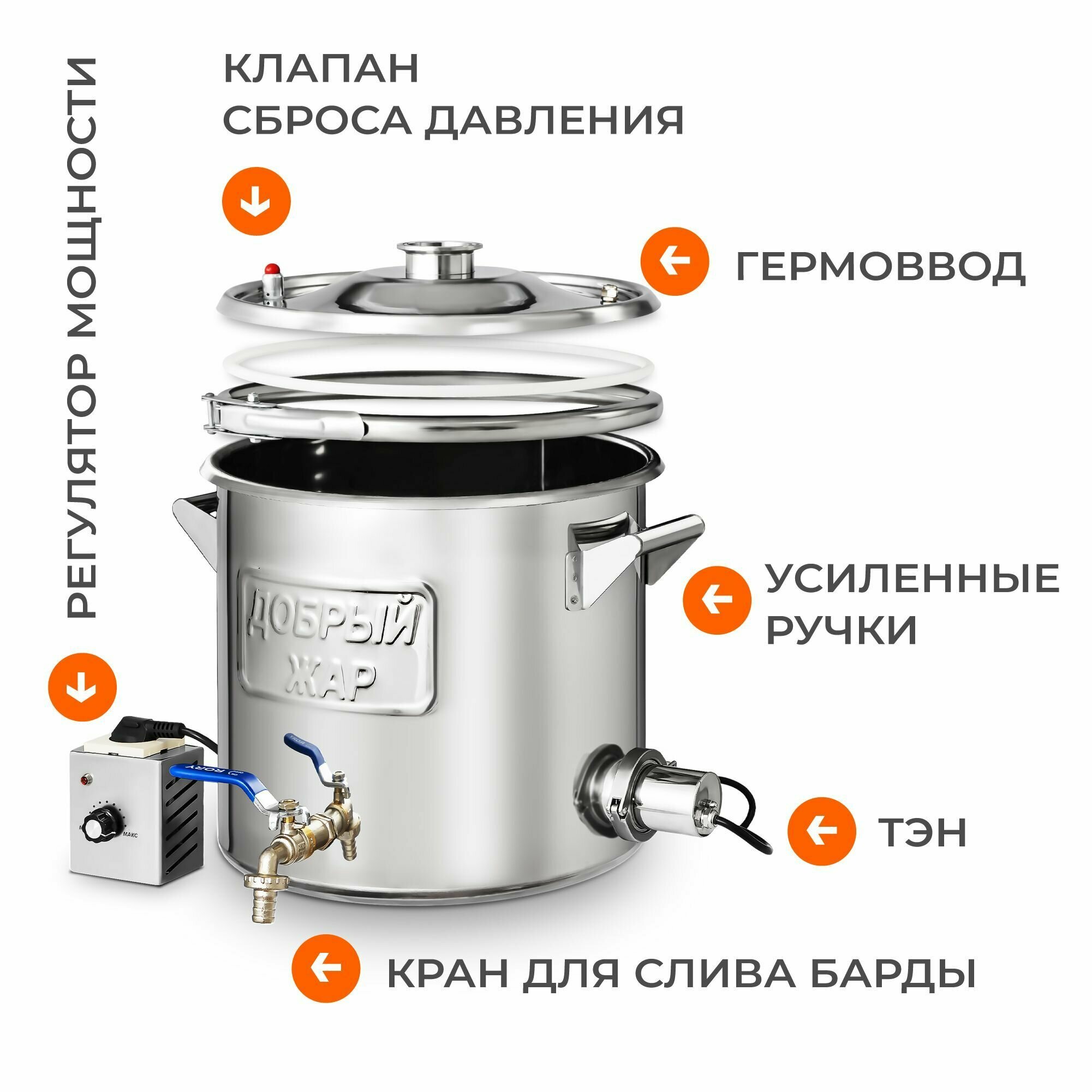 Самогонный аппарат "Добрый Жар" Дачный 20 литров с ТЭН непроточный дистиллятор с разборным сухопарником интересное: