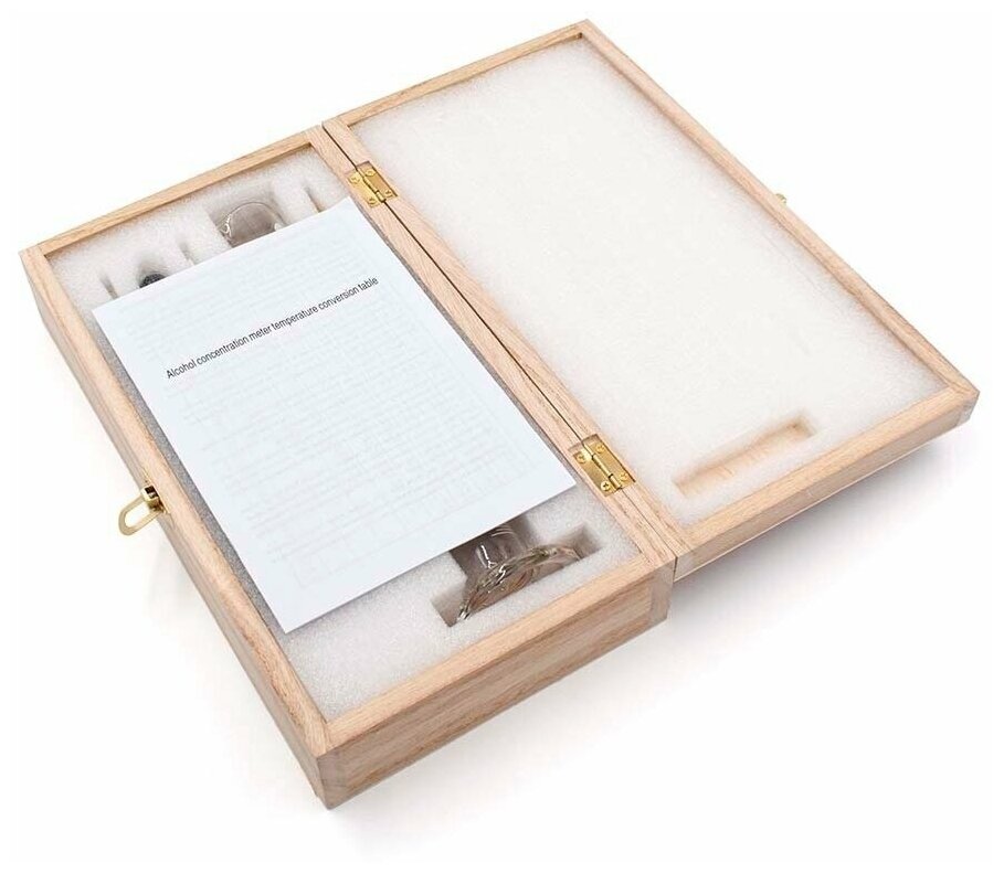 Набор спиртометров (ареометров) для самогона 0-100 с термометром и стеклянным цилиндром в деревянном футляре интересное: