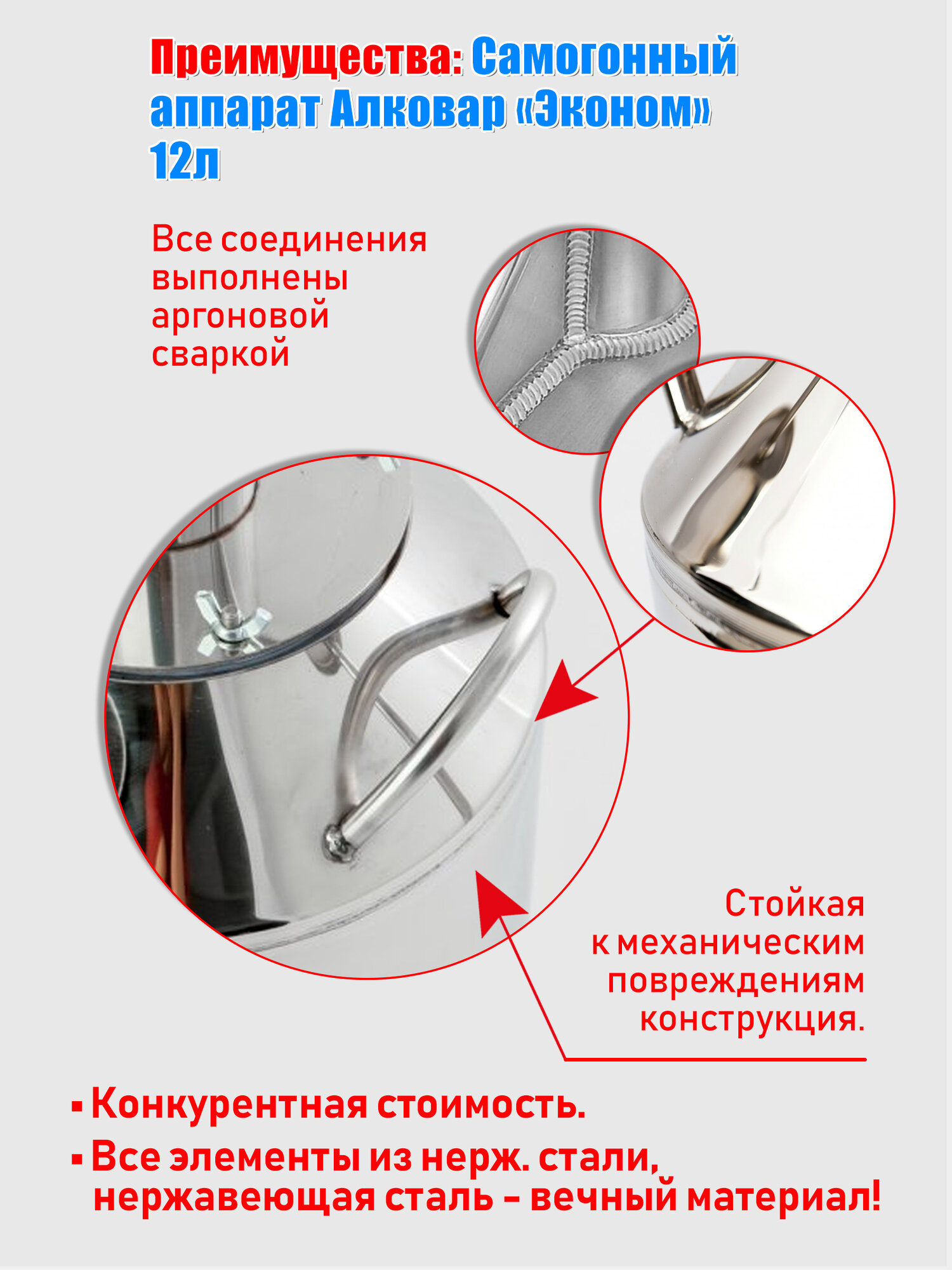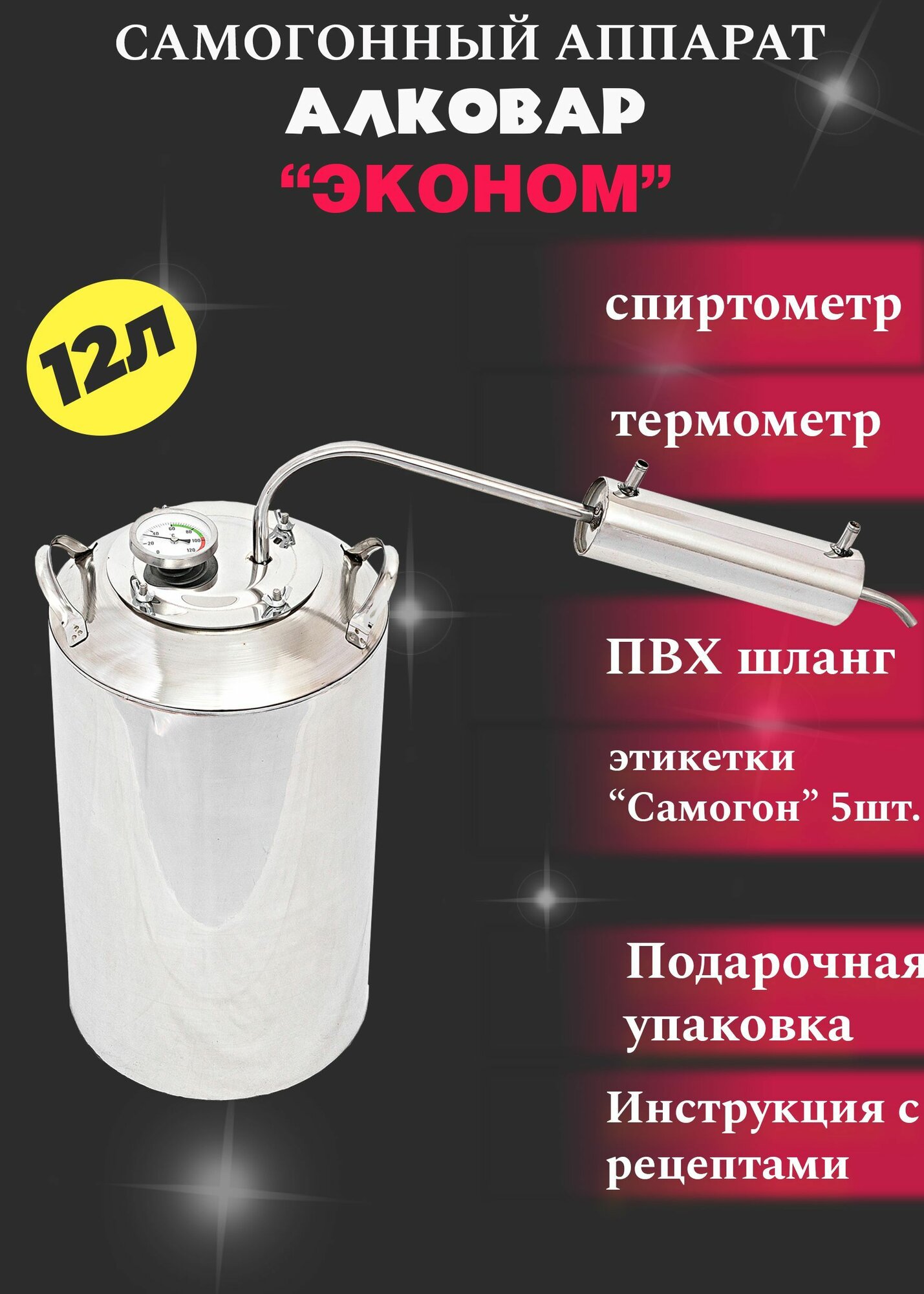 Самогонный аппарат Эконом, 12л + термометр на клампе 1,5", инструкция в комплекте интересное: