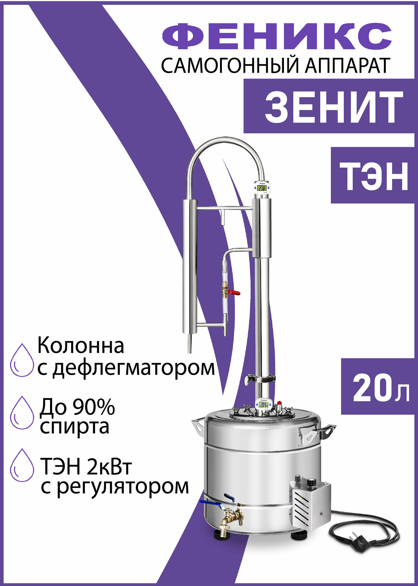 Купить Самогонный аппарат колонного типа Зенит, 20 литров (с ТЭН), дистиллятор для самогона