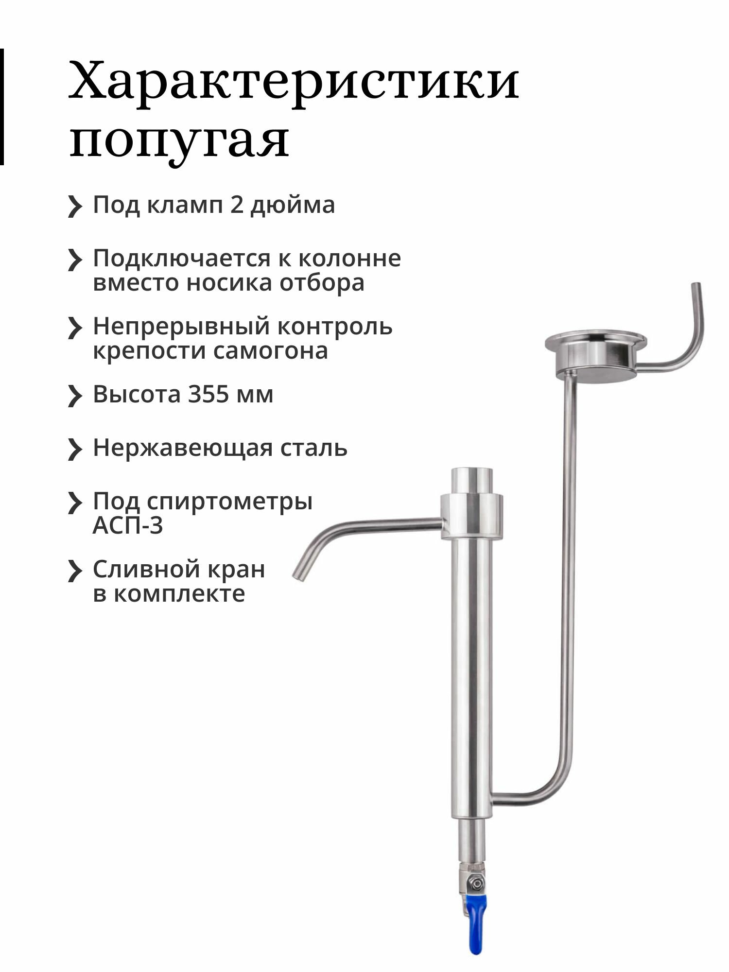 Попугай для контроля крепости самогона, подвесной на клампе 2 дюйма (нержавеющая сталь) интересное: