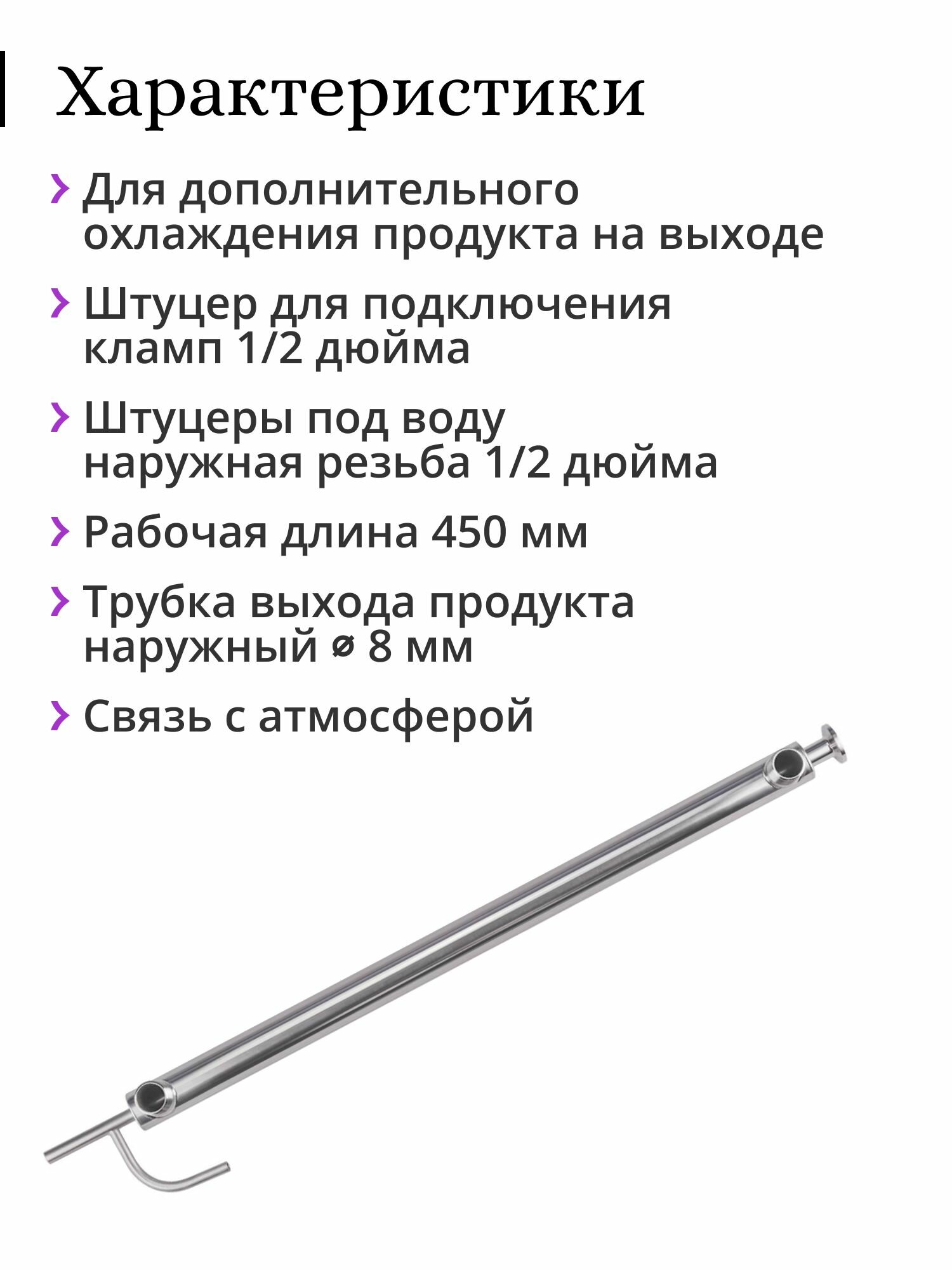 Купить Доохладитель со связью с атмосферой Mendeleeff, под кламп 1/2 дюйма (25,4 мм), трубка выхода 8 мм, 450 мм