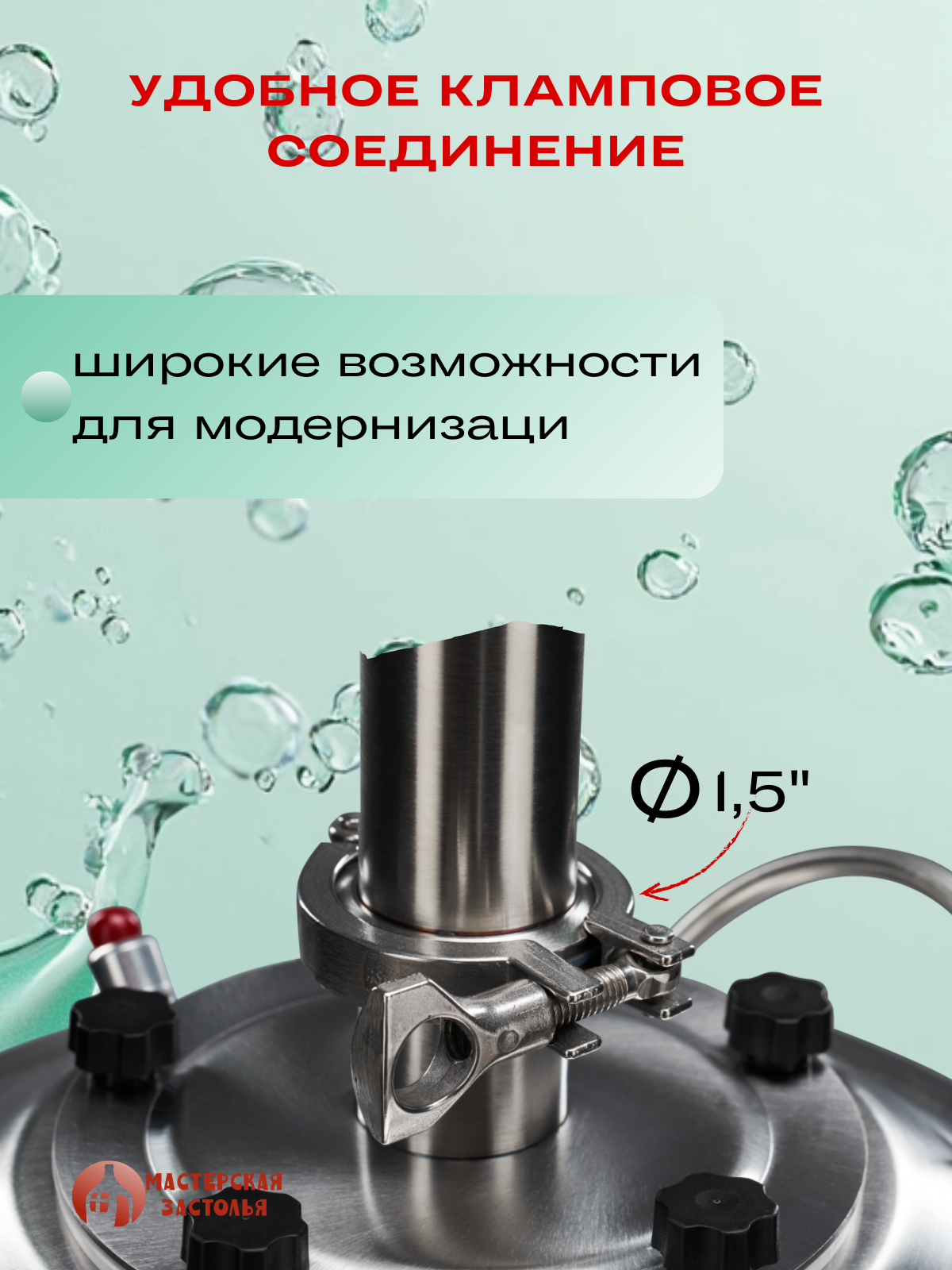 Перегонный куб 40 литров, конусный, кламп 1,5 дюйма Мастерская застолья 2