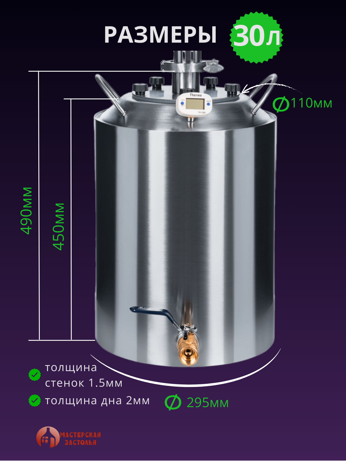 СохранитьПерегонный куб 30 литров, конусный, кламп 2 дюйма Мастерская застолья интересное: