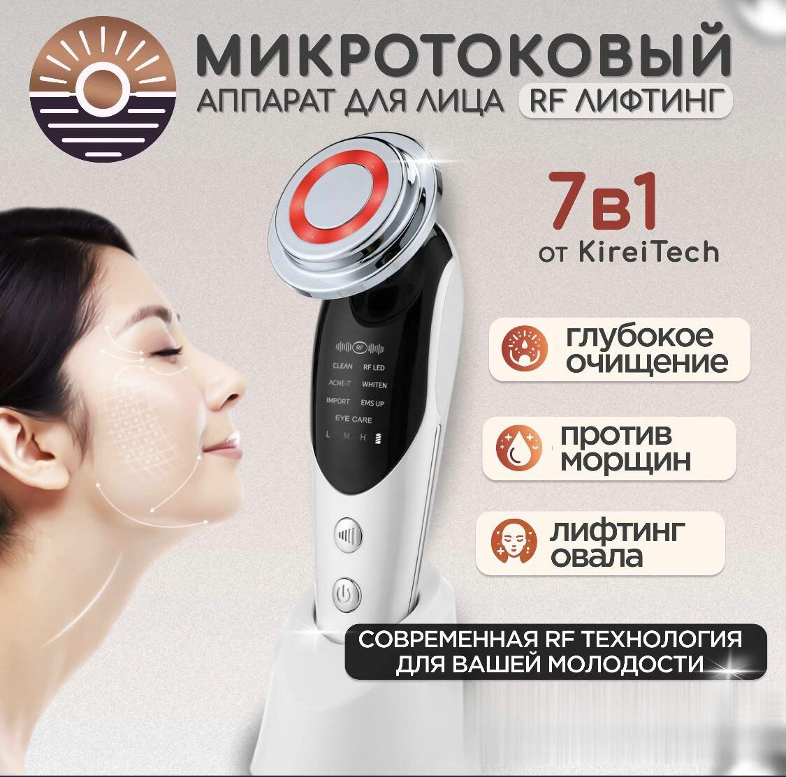 Микротоковый массажер для лица и шеи, косметологический RF лифтинг аппарат, микротоки интересное: