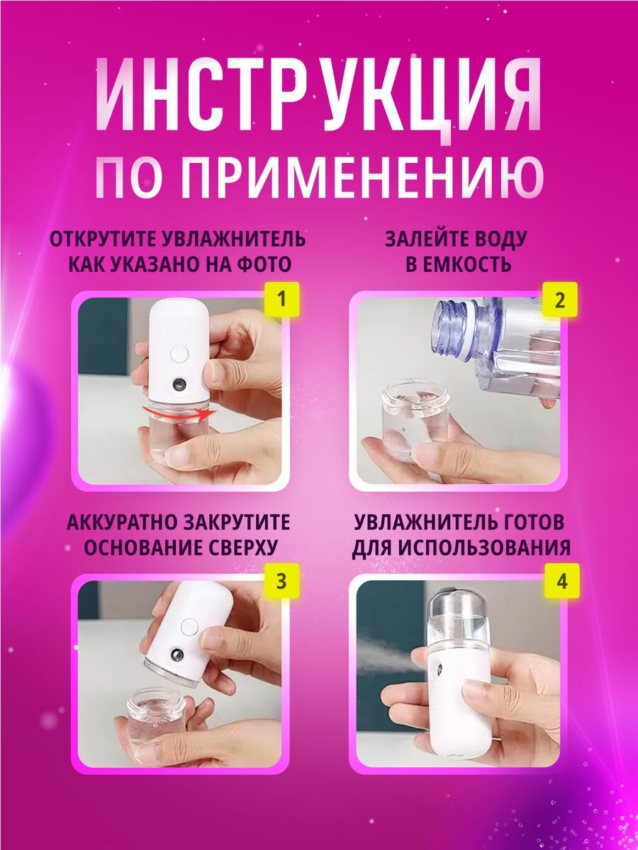 Увлажнитель, для лица, мини, белый, ультразвуковой, ионизатор, питание от USB, от аккумулятора интересное: