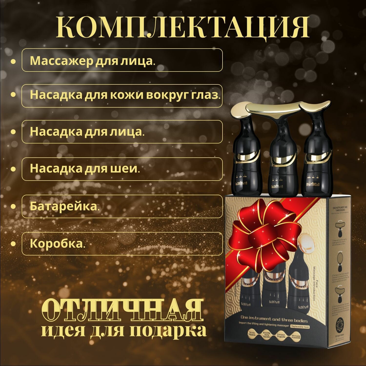 Массажер для лица, вибрационный, с насадками, черный, золотистый интересное: