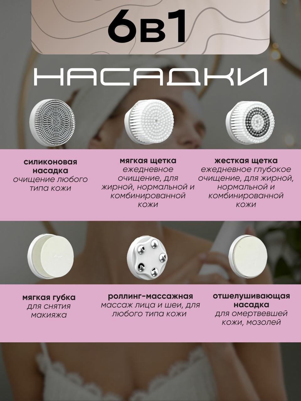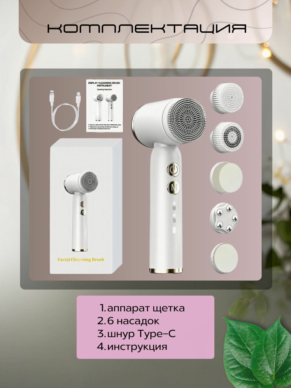 Электрическая щетка для чистки лица с 6 насадками / Аккумуляторный аппарат для глубокого очищения кожи и горячего, холодного массажа интересное: