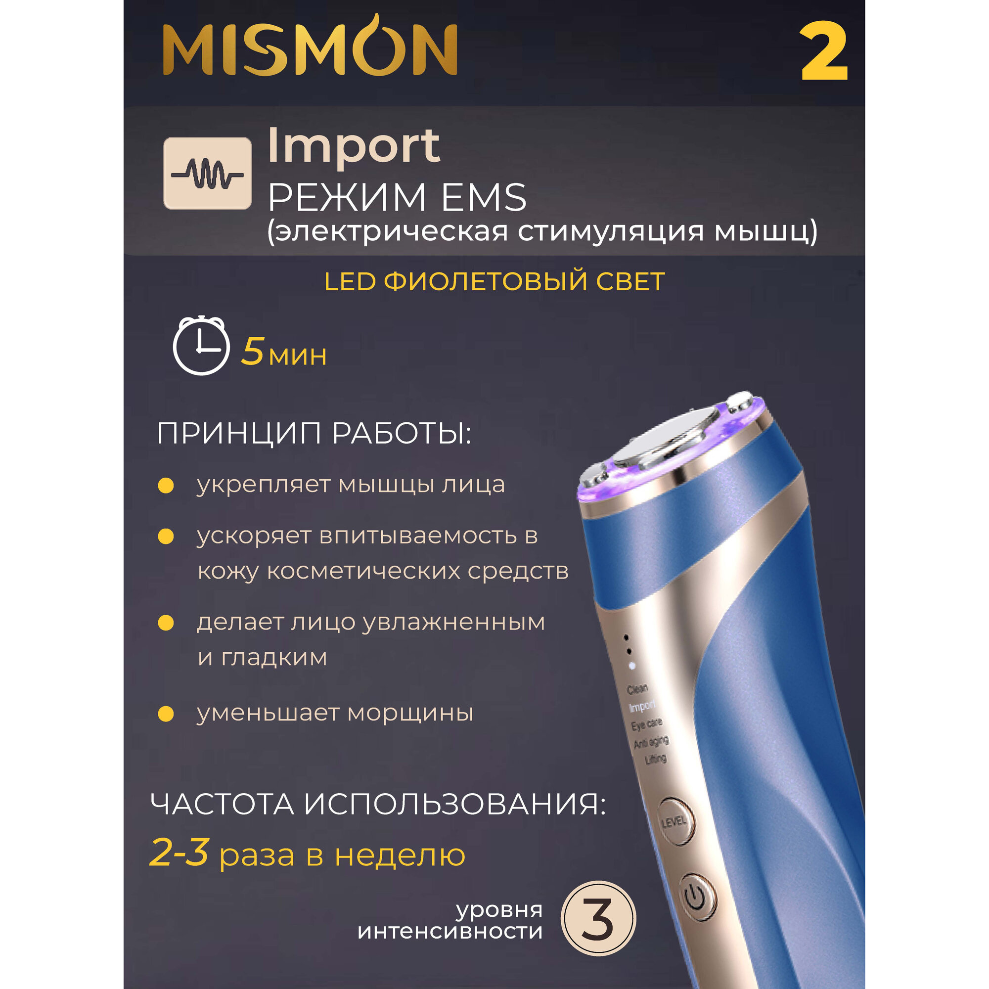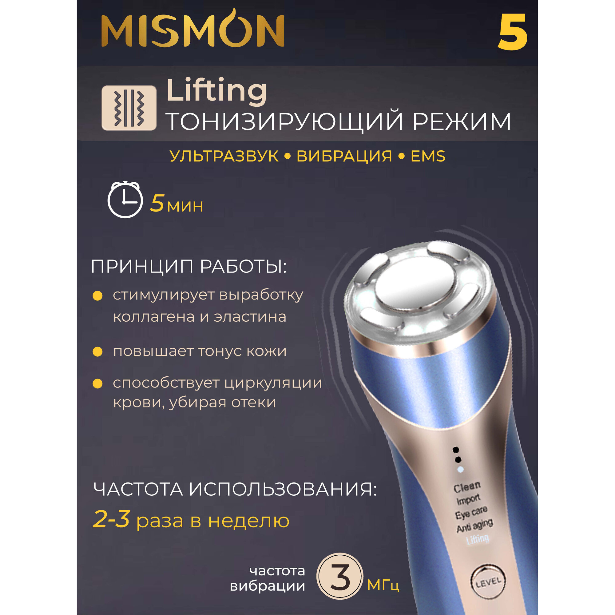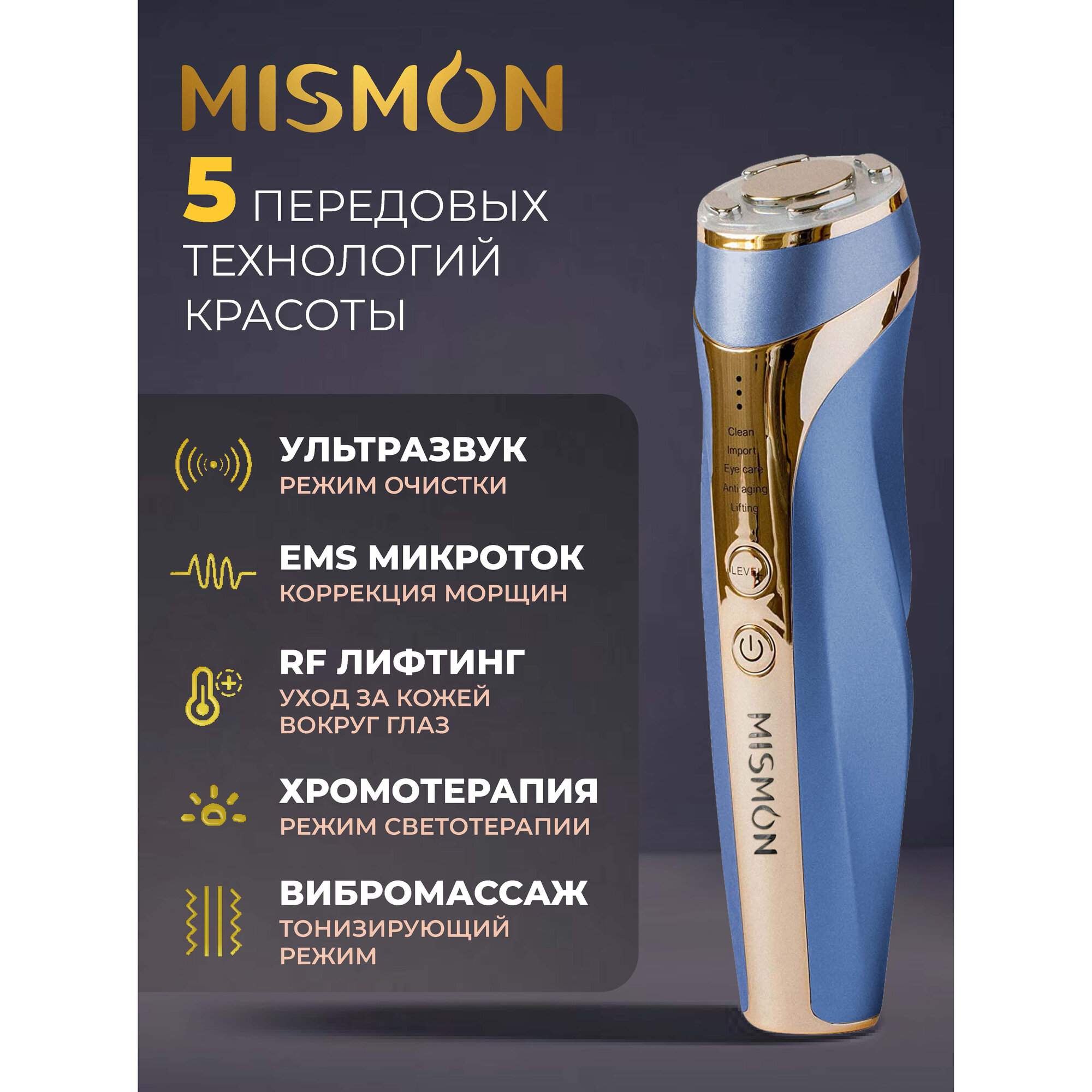 Лифтинг массажер для лица Mismon 318C интересное: