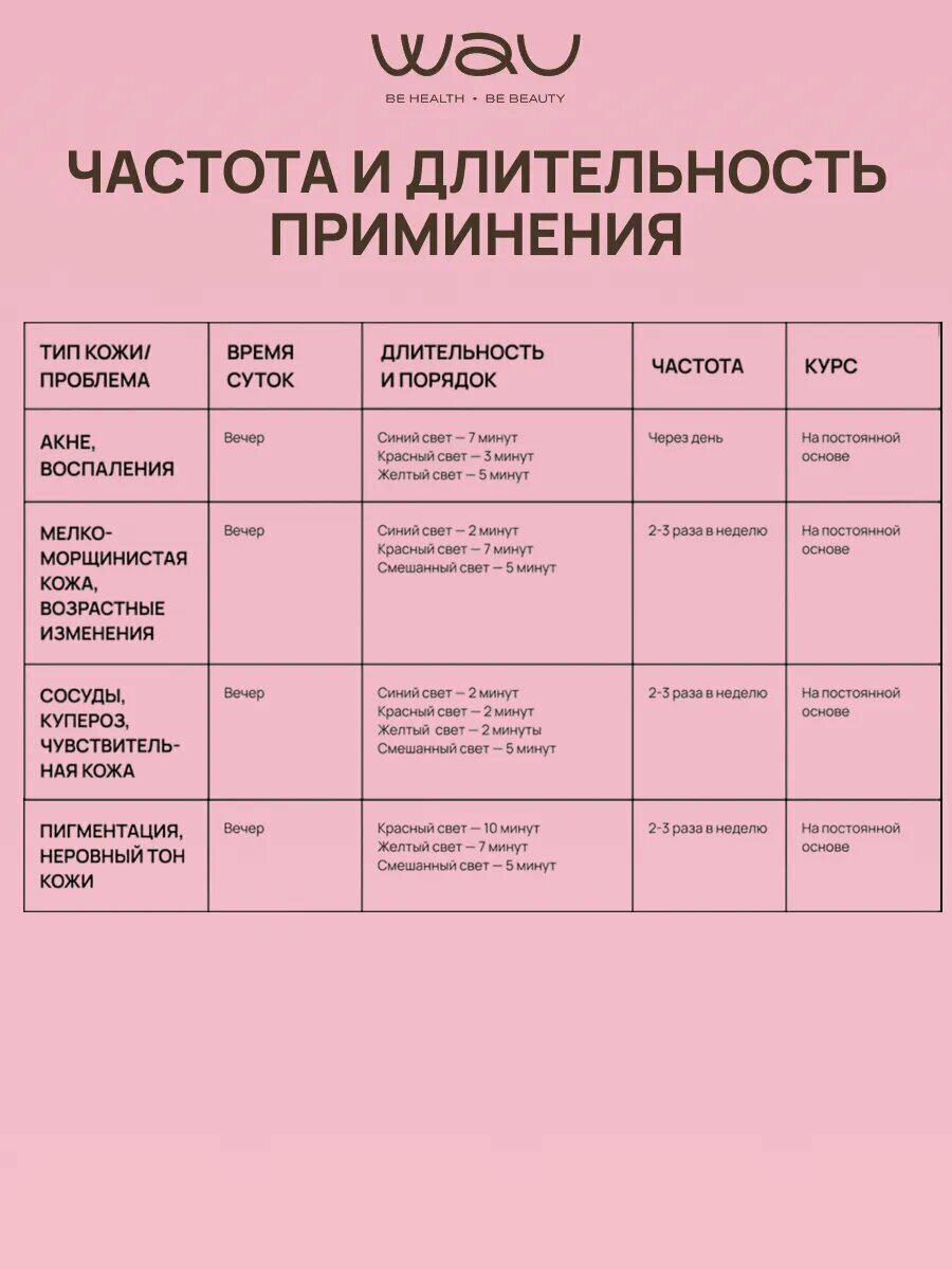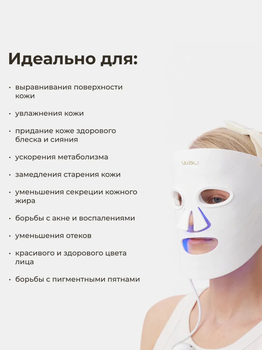 WAU Светодиодная LED маска для фототерапии лица, омоложение для всех типов кожи интересное: