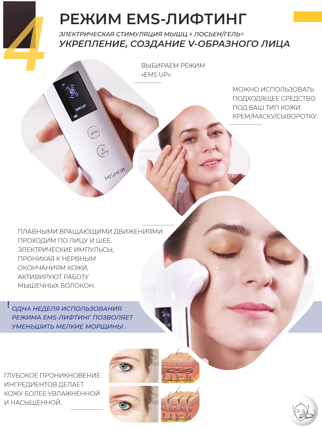 Массажер для лица Mismon RF лифтинг с микротоками и охлаждением (m1611) интересное: