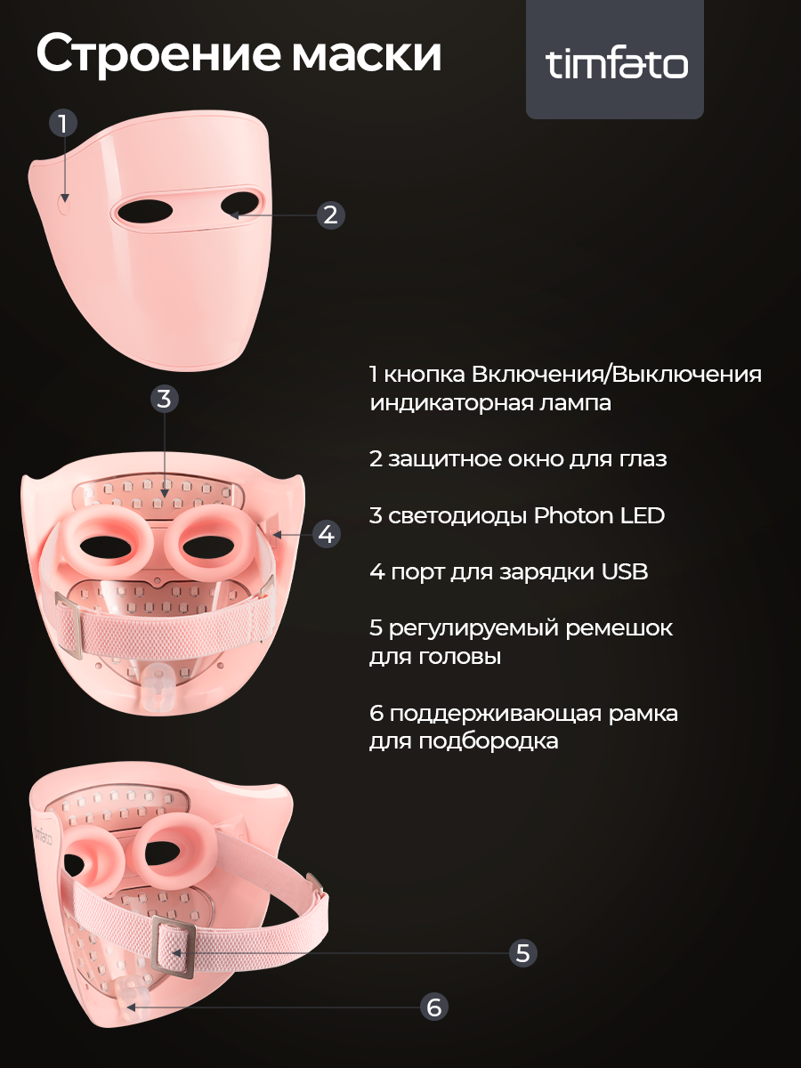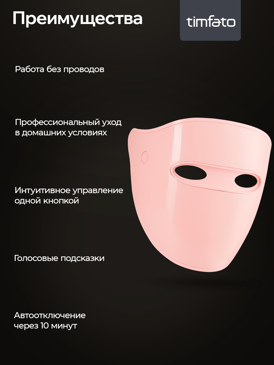 Светодиодная LED Маска для лица TIMFATO, фототерапия против морщин, беспроводная, для всех типов кожи интересное: