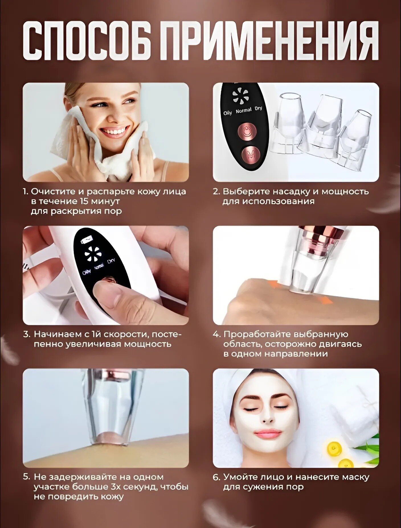 Вакуумный аппарат для удаления чёрных точек, чистка лица. 6 насадок интересное:
