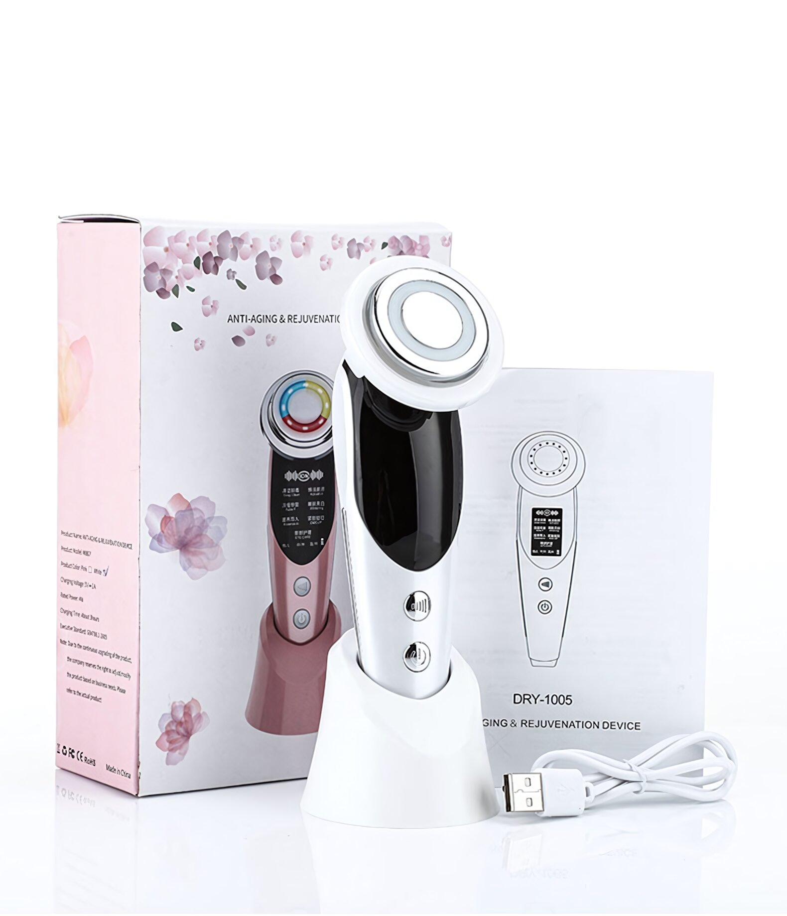 Массажер EMS M8807, для лица, семирежимный, импортный, бытовой, цветной свет, омоложение кожи