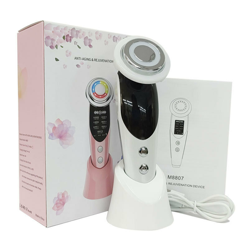 Массажер EMS M8807, для лица, семирежимный, импортный, бытовой, цветной свет, омоложение кожи