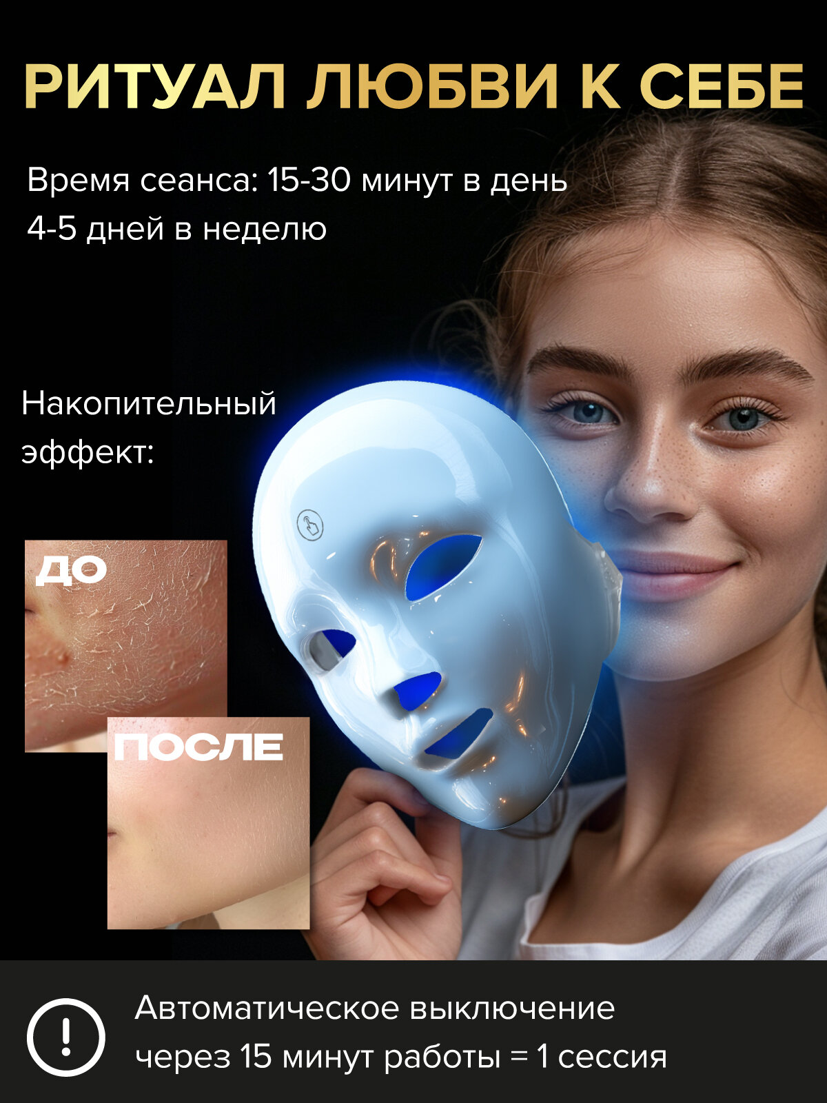 Светодиодная LED маска для лица Evo Beauty W100 беспроводная. Омолаживающая фототерапия для лица интересное: