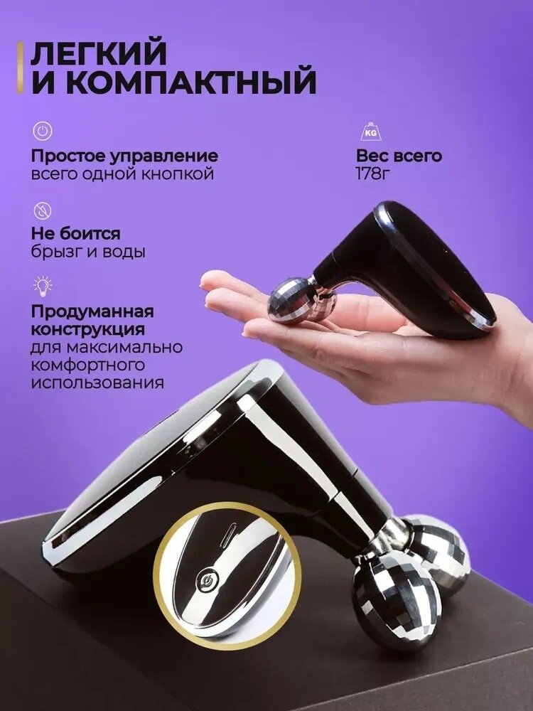 Массажер для лица, с микротоками, миостимуляцией, вращение, аккумулятор, 2 насадки интересное: