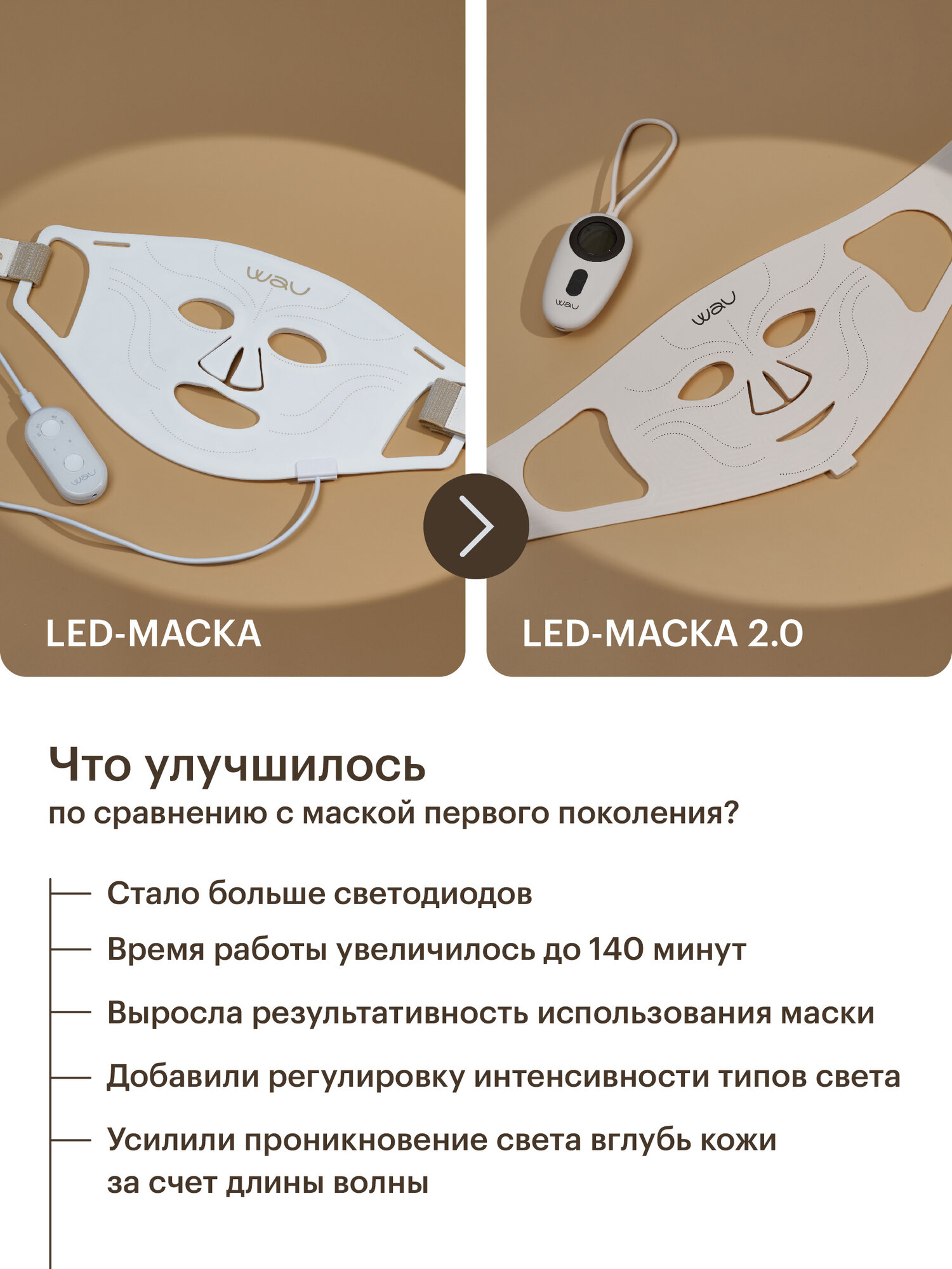 LED маска WAU 2-го поколения светодиодная для фототерапии лица интересное: