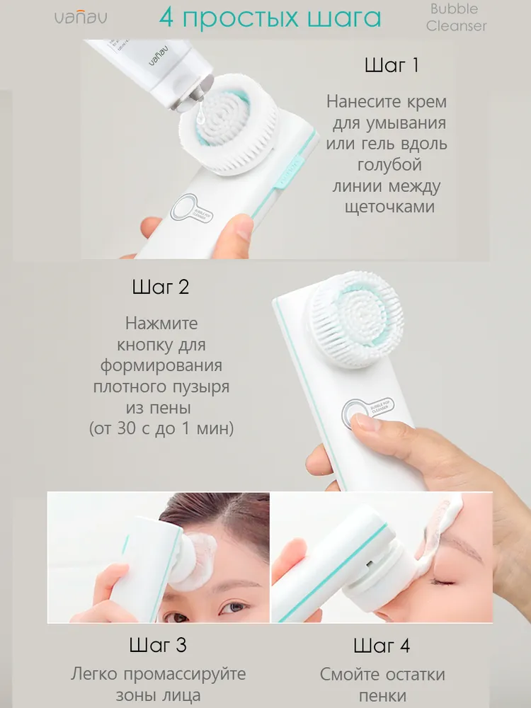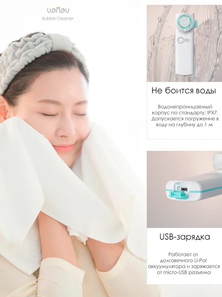 Электрощетка для очищения лица и деликатной очистки кожи Vanav Bubble Pop Cleanser. Для удаления черных точек и глубокой очистки пор. интересное: