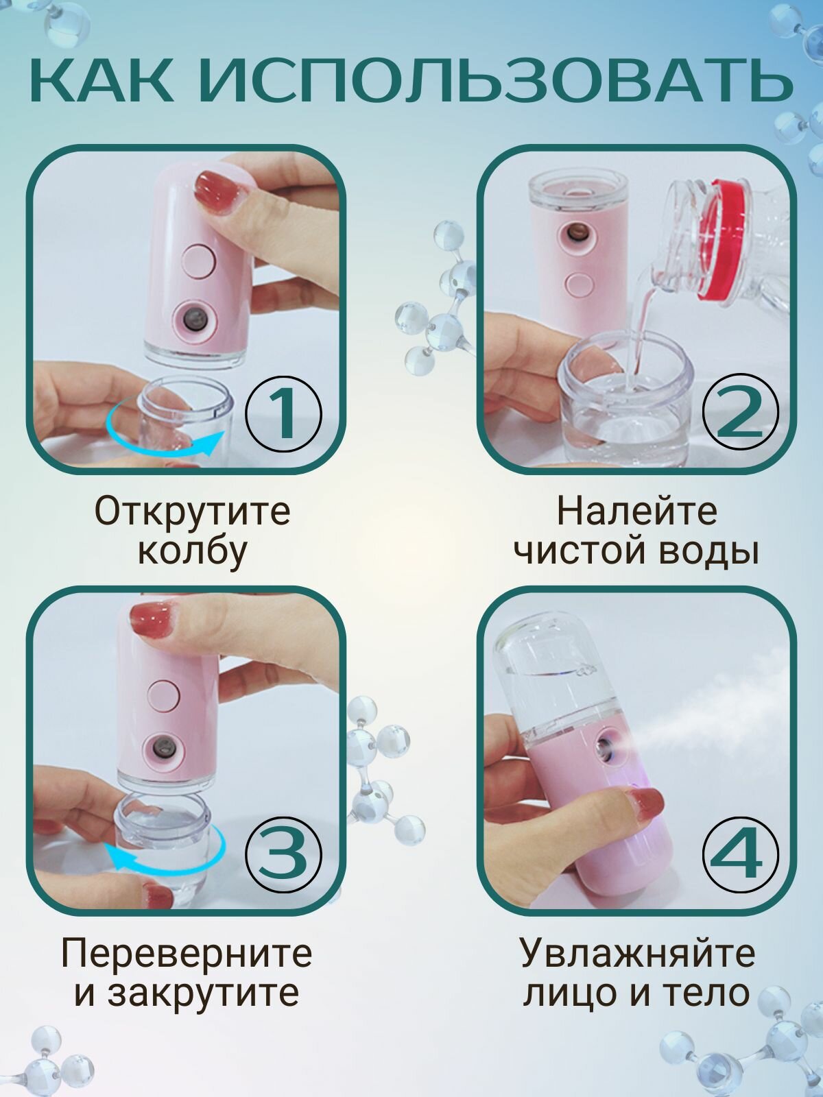 Портативный мини-увлажнитель для лица с подсветкой, голубой