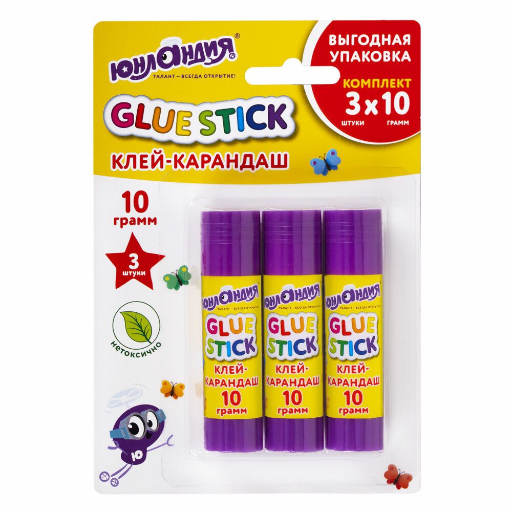 Купить Упаковка 12 шт. Клей-карандаш 10 г, выгодная упаковка, 3 шт. на блистере, юнландия, 271943