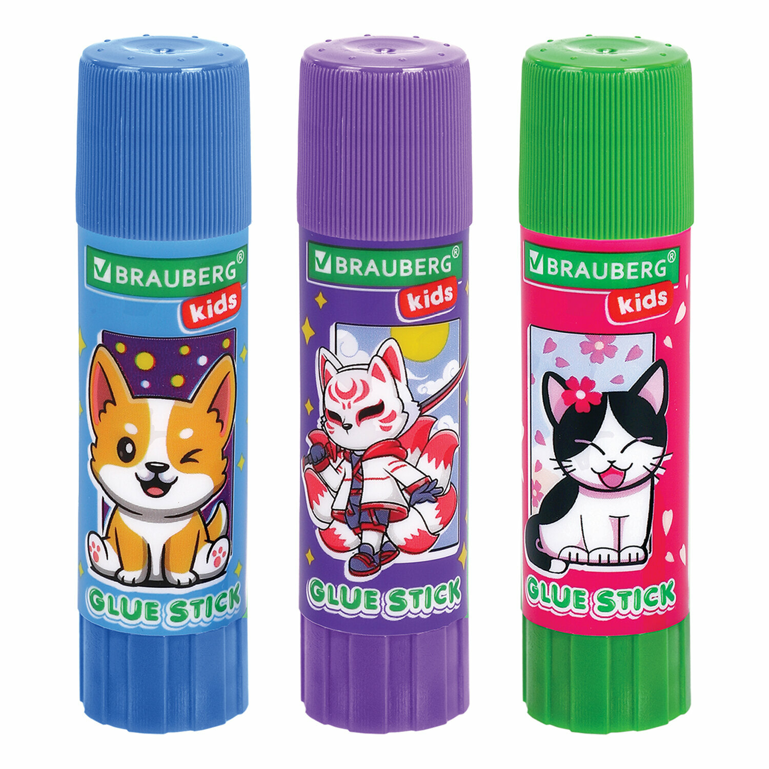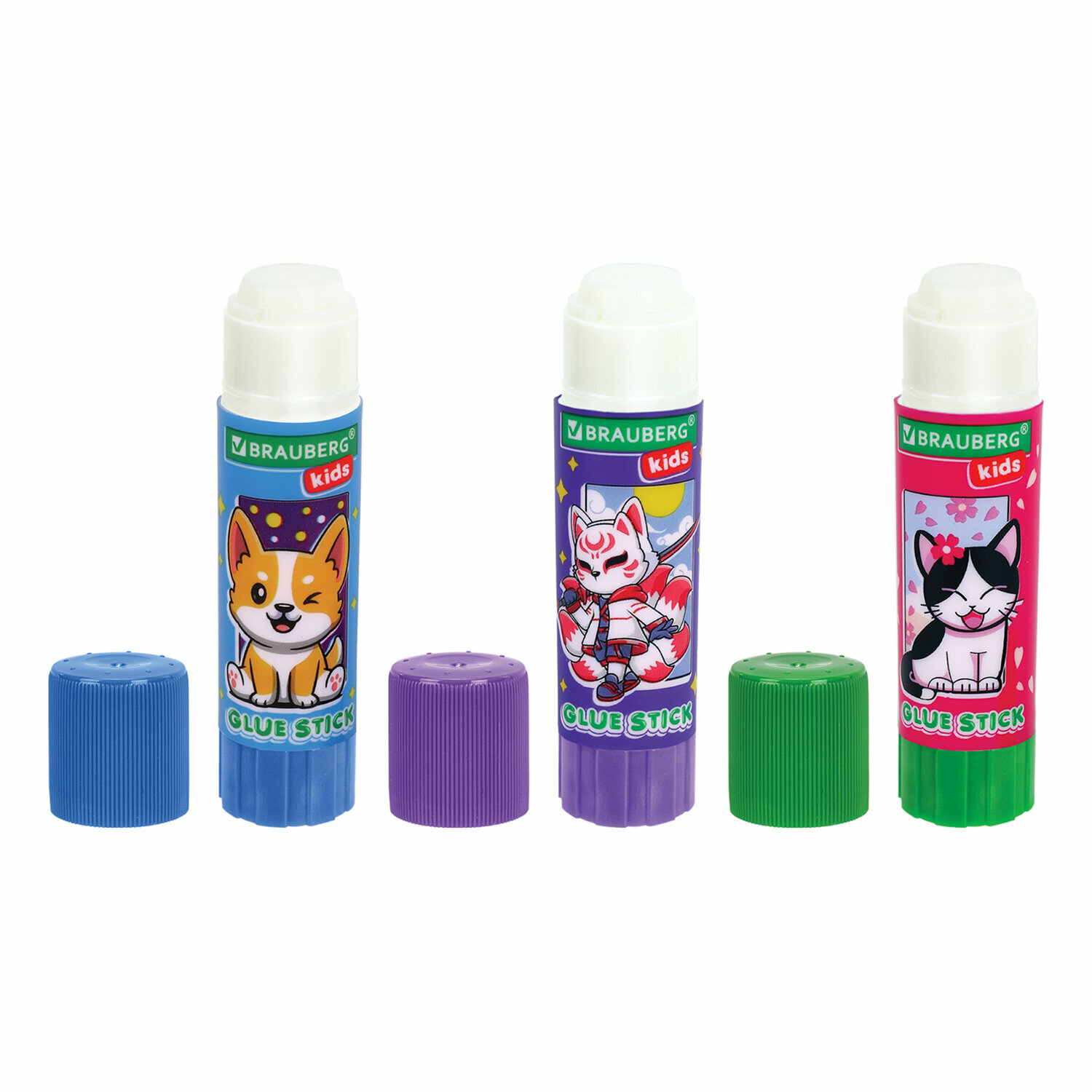 Купить Клей-карандаш канцелярский для бумаги и картона, набор 3 штуки по 9 г для школы, детского творчества, Brauberg Kids Anime, 272471