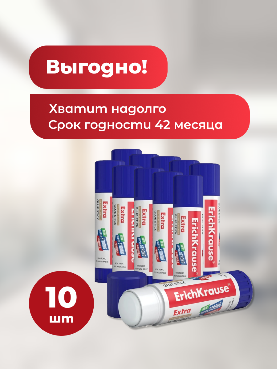 Купить Клей-карандаш "Extra" ErichKrause, без дозатора 21 гр, 10 шт