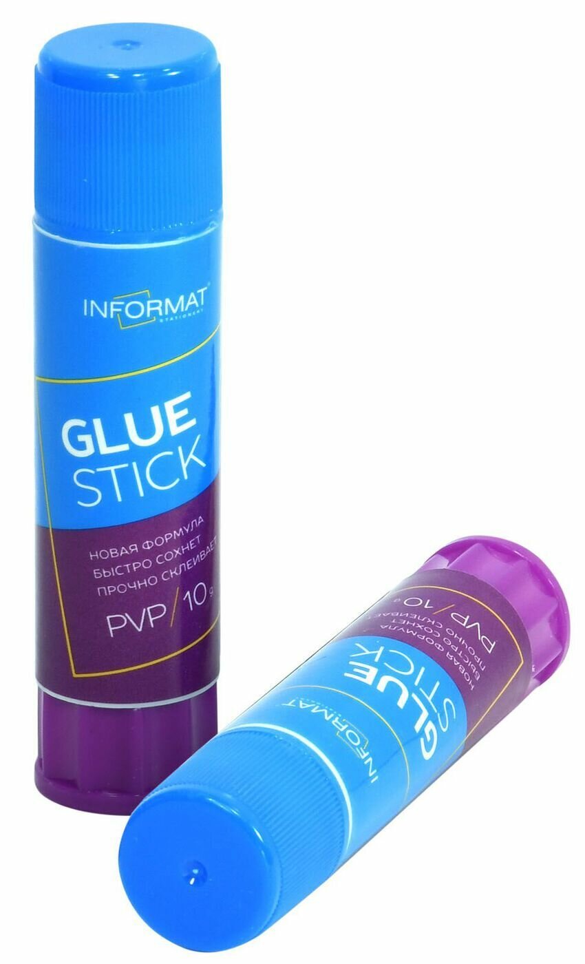 Клей-карандаш INFORMAT, для бумаги и картона, 10г, голубой, фиолетов интересное: