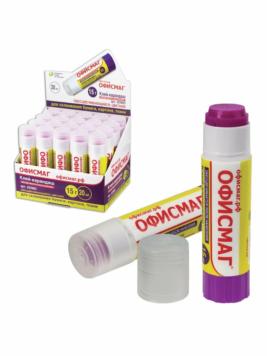 20шт Клей-карандаш офисмаг 15 г, обесцвечивающийся после вы интересное:
