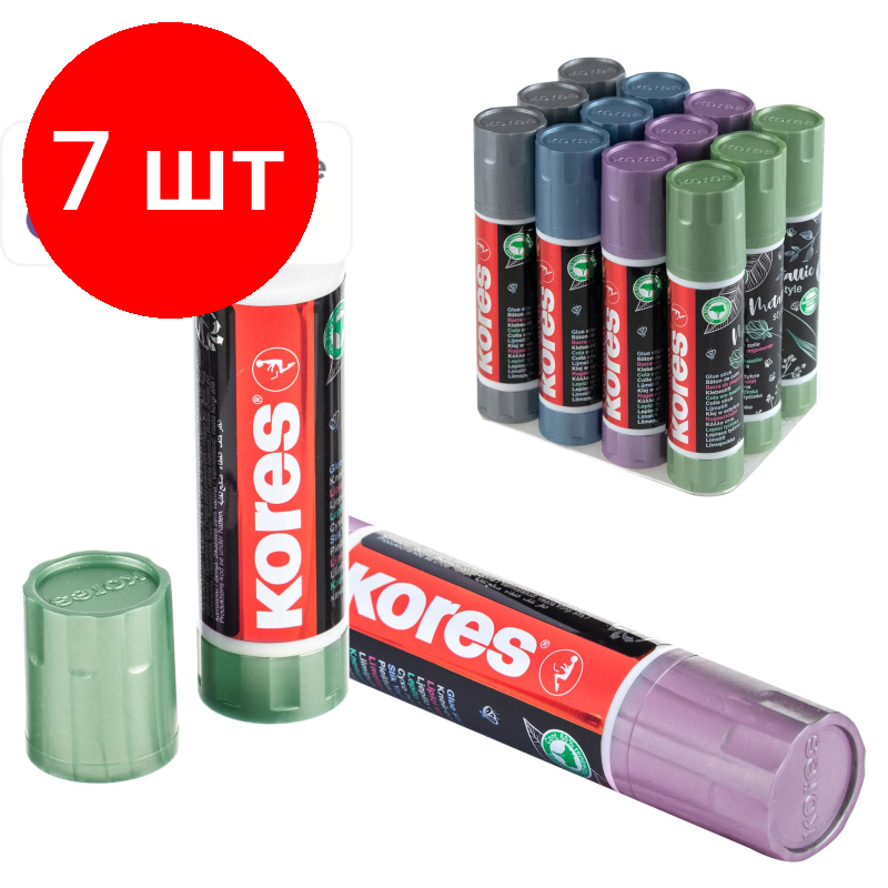 Купить Комплект 7 штук, Клей-карандаш 20г Kores Metallic Style, цвета корп в асс 12212