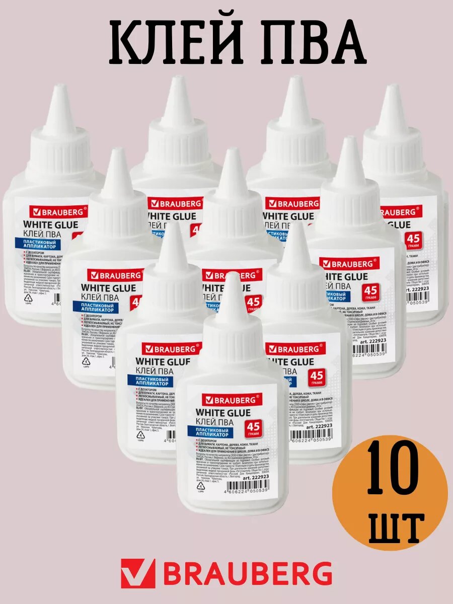 Клей канцелярский Brauberg, ПВА, для школы и офиса, аппликатор, 45 грамм, 10 штук интересное: