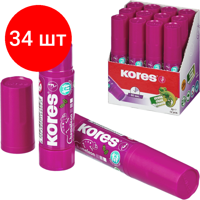 Купить Комплект 34 штук, Клей-карандаш 8г KORES Chameleon (исчезающий цвет) 16802
