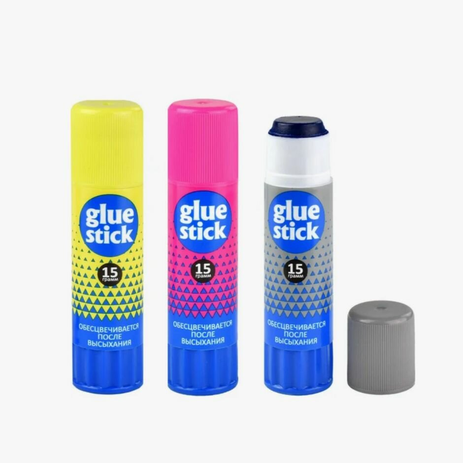 Купить Клей-карандаш, 15 г, PVP основа, синий, 4 штуки
